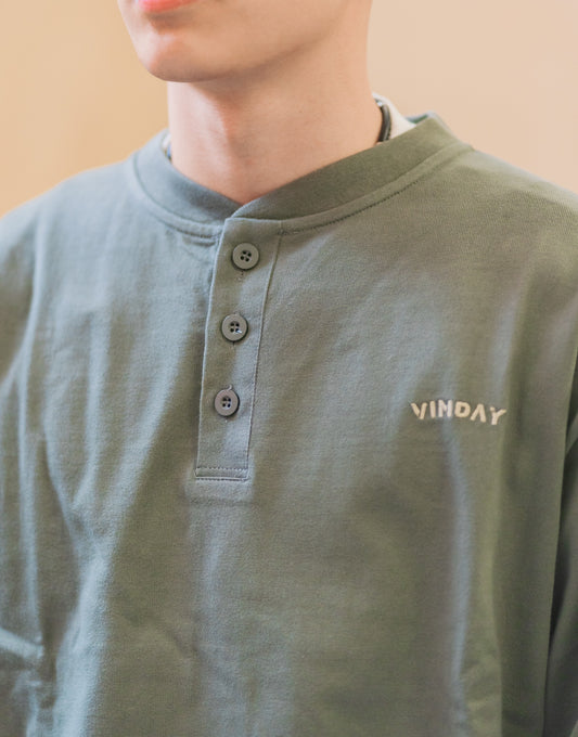 VINDAY 2022 Fall & Winter Vintage Henley L/S Tee(霧灰)