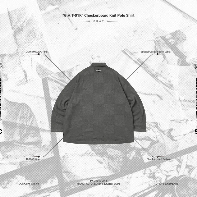 AES x GOOPiMADE “G.A.T-01K” Checkerboard Knit Polo Shirt - Gray