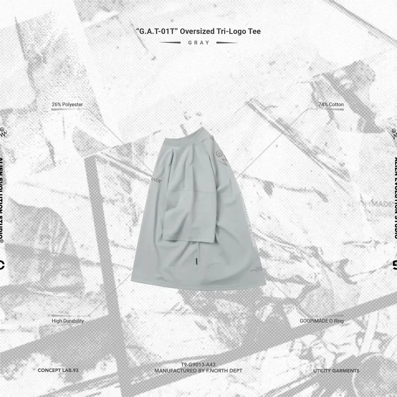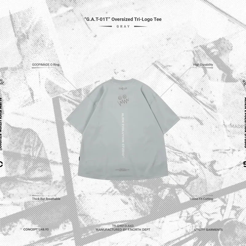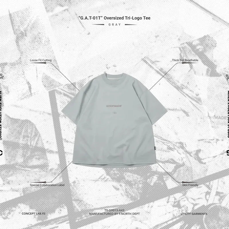 AES x GOOPiMADE x T9G “G.A.T-01T” Oversized Tri-Logo Tee - L-Gray