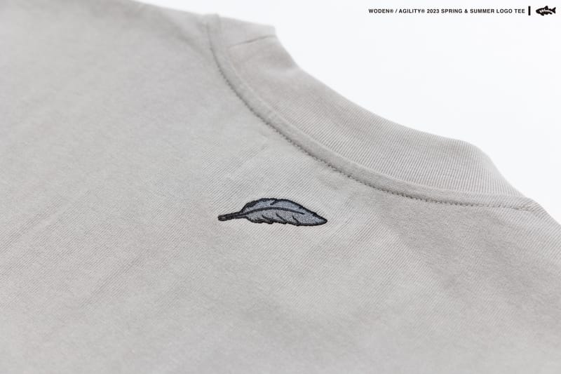 此款T-Shirt 以雙方LOGO融合作為主視覺,正面將AGILITY®鮭魚LOGO貫穿在WODEN®經典羽毛LOGO中,