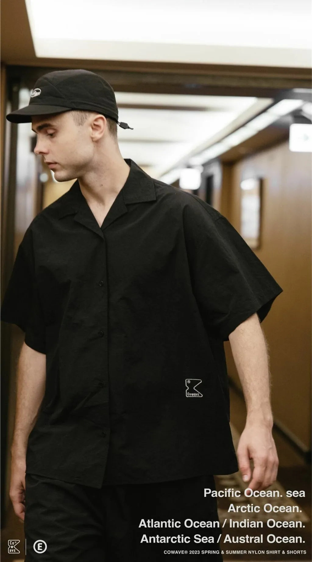此次發售襯衫單品採用古巴領口設計,選擇寬鬆落肩版型。