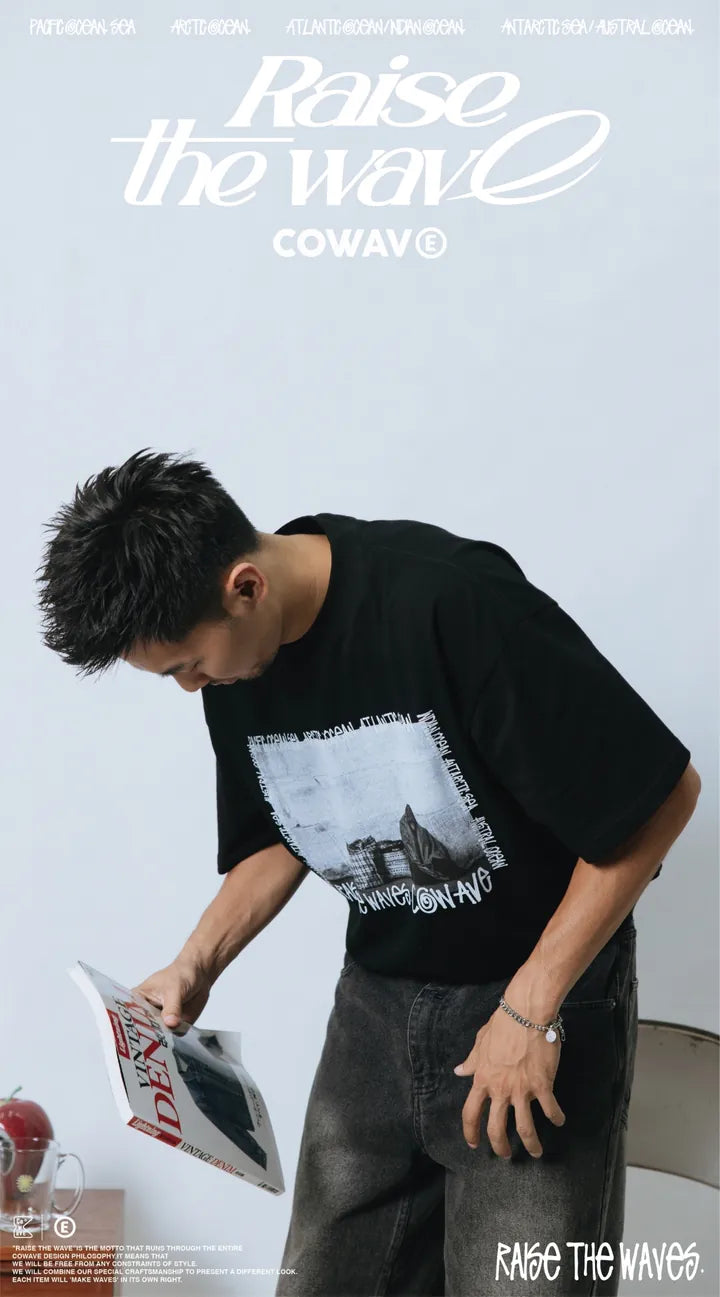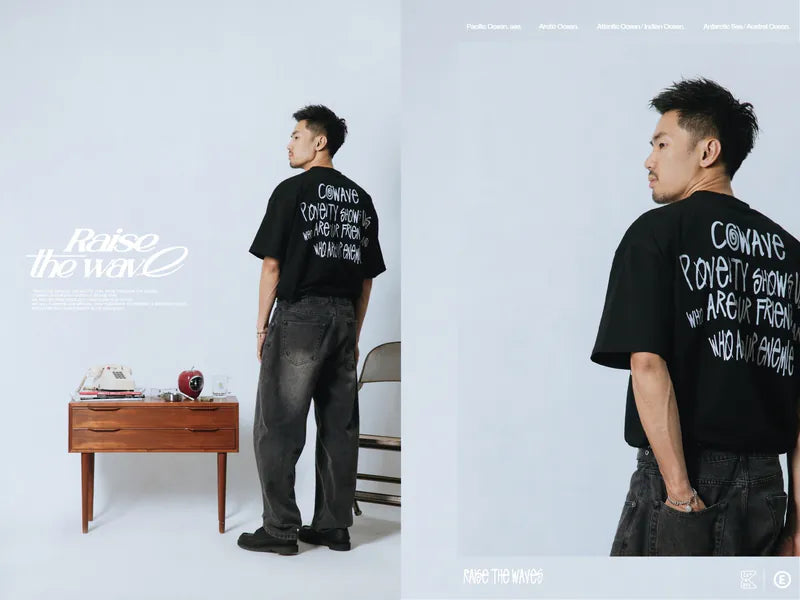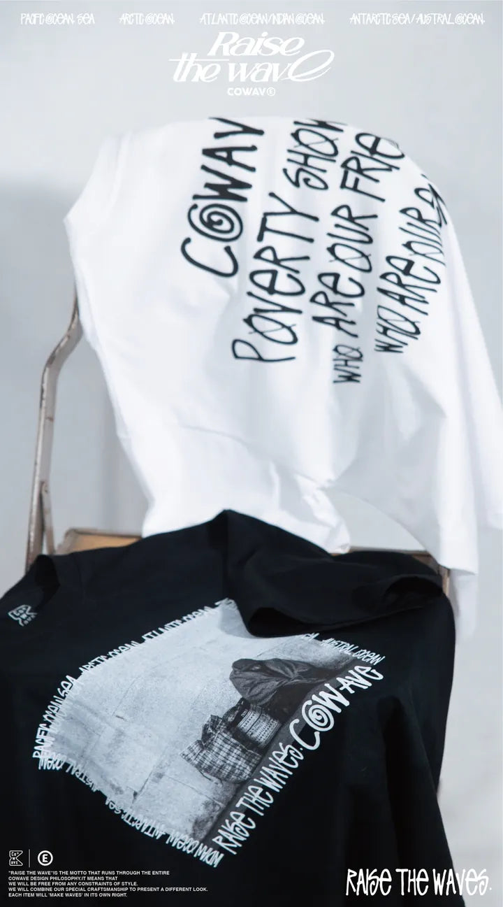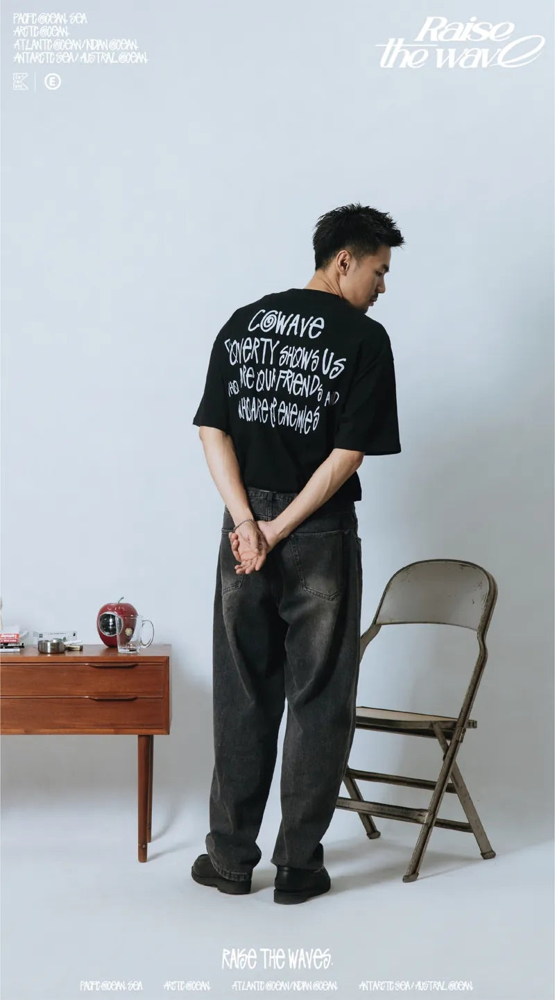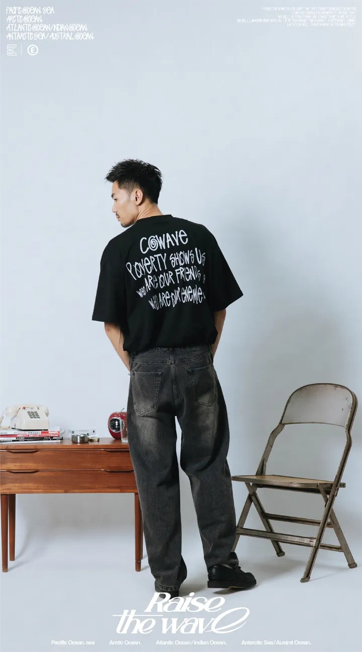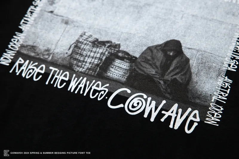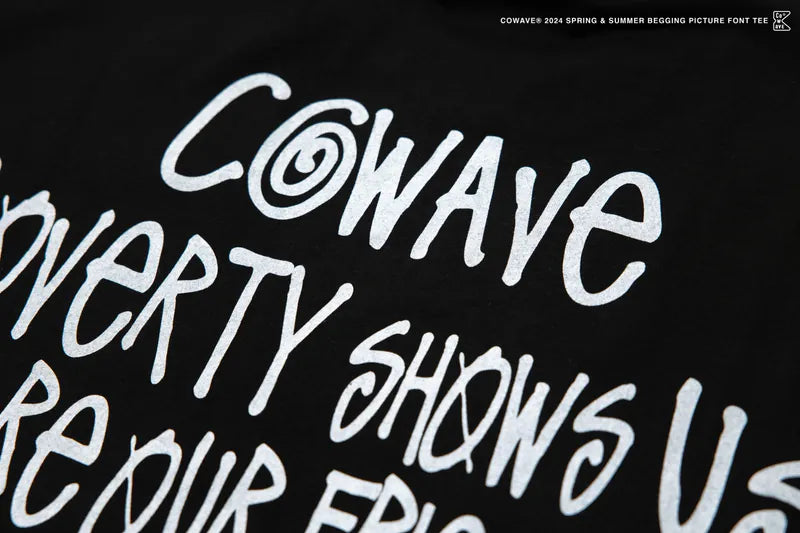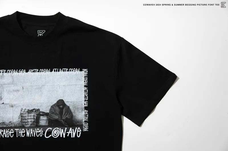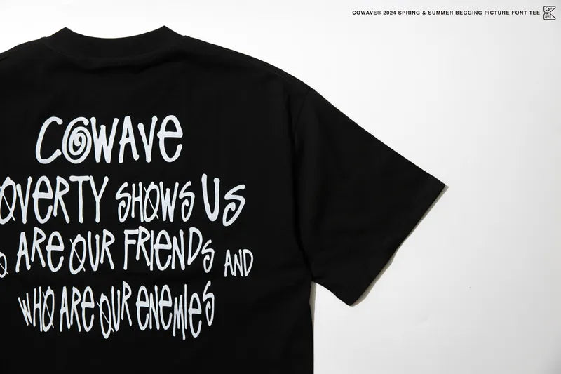 COWAVE 2024 Spring & Summer Begging Picture Font Tee - 黑色款