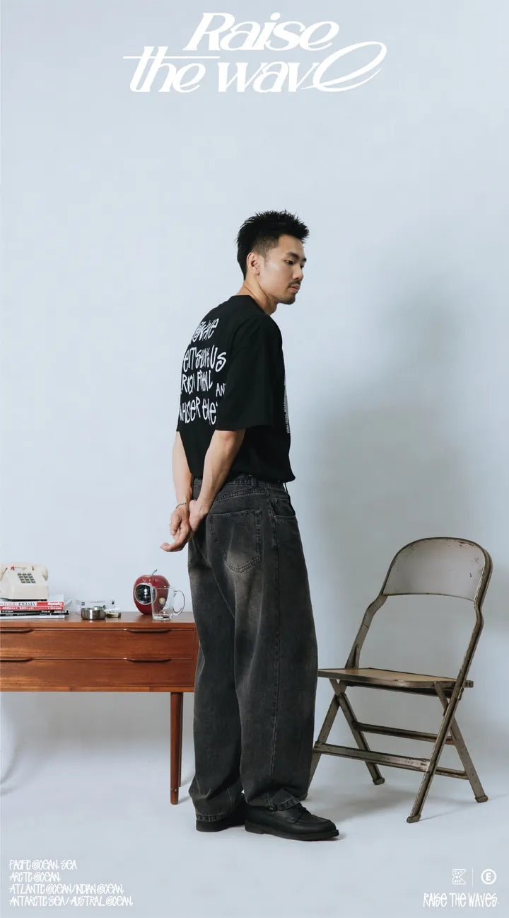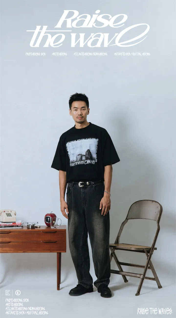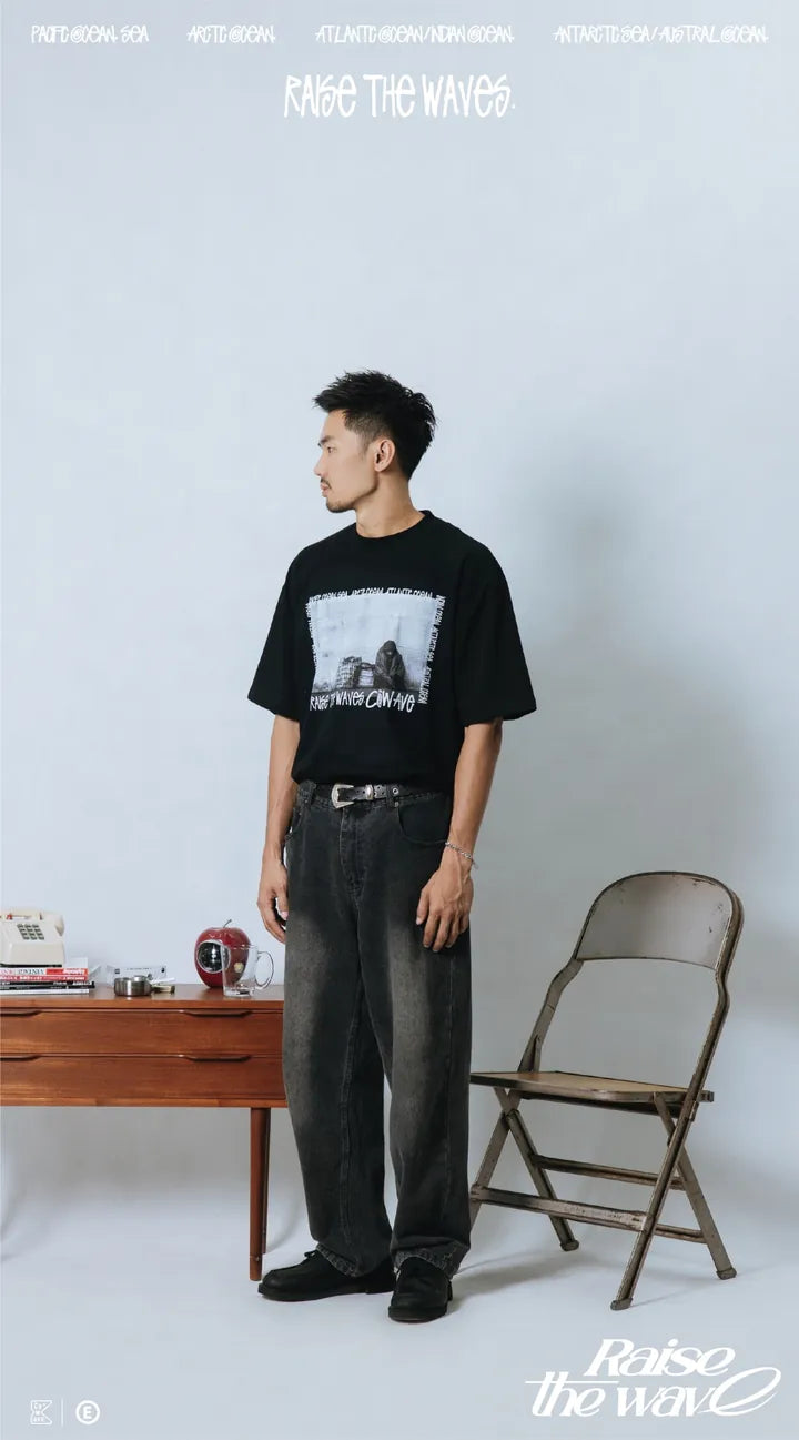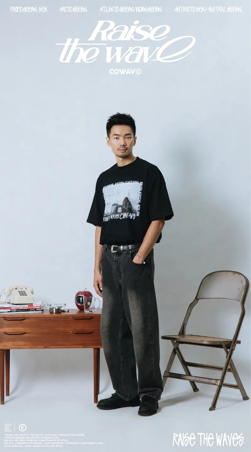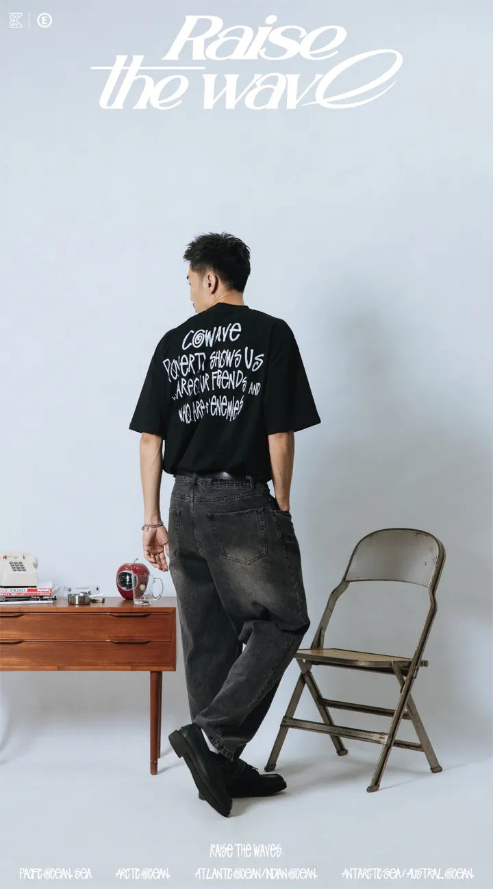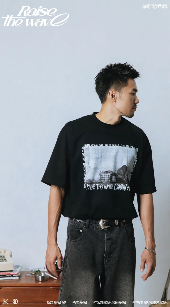 COWAVE 2024 Spring & Summer Begging Picture Font Tee - 黑色款