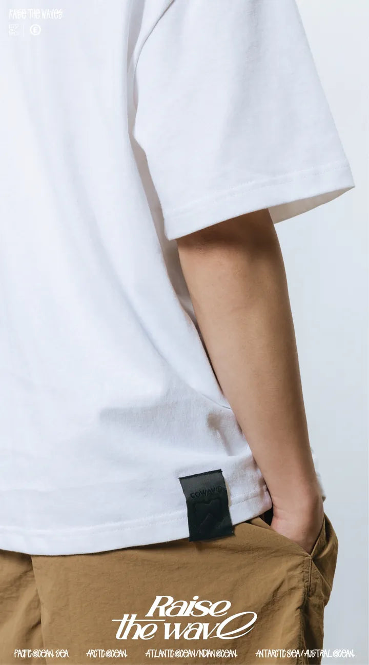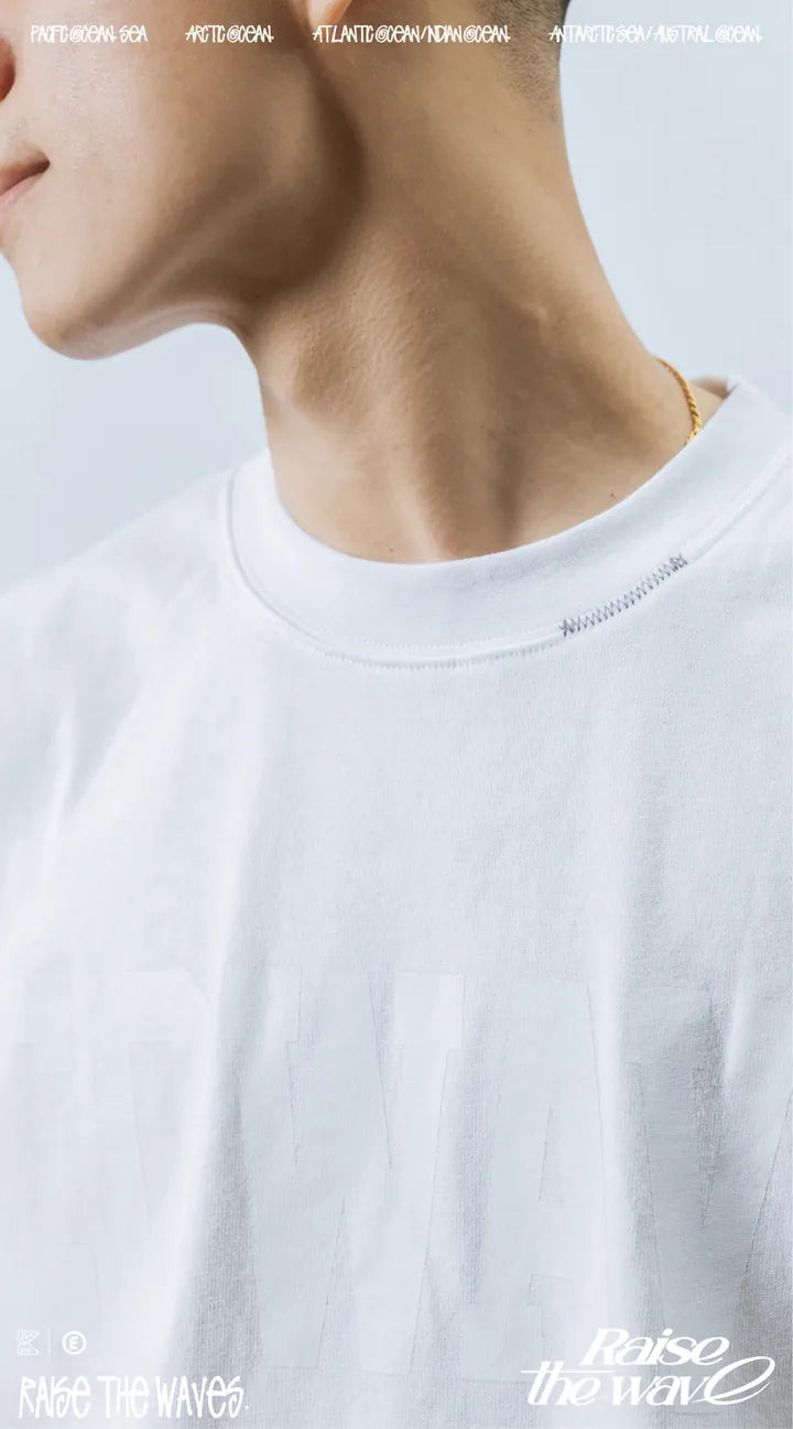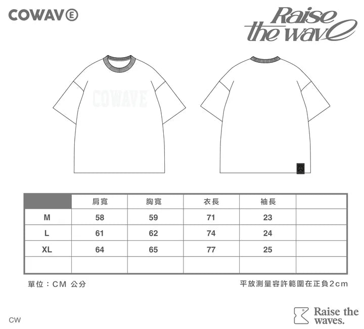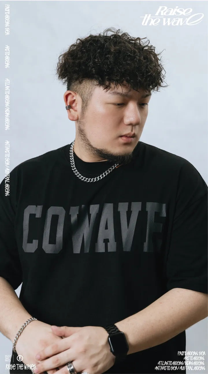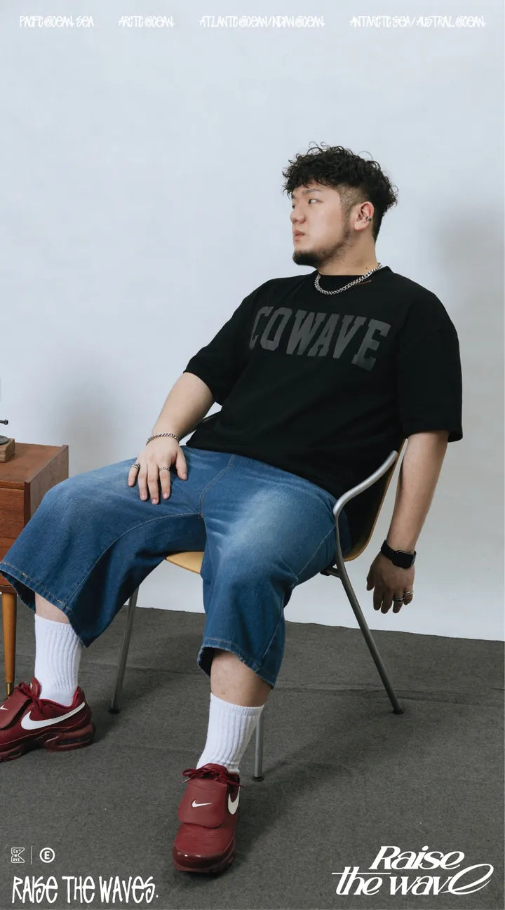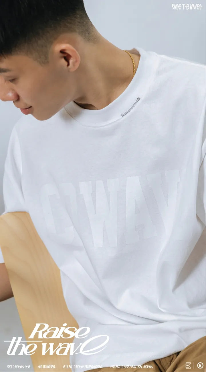 此款T-shirt 正面加入COWAVE美式大學風格字體,印花顏色同佈底色,印花光澤與面料呈現出若影若現的質感,在不同光線下呈現出的光澤感也能有所不同。