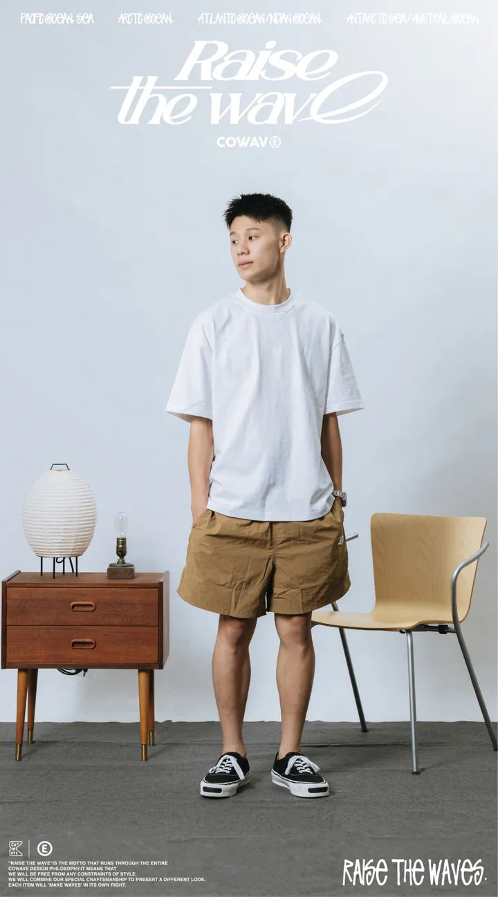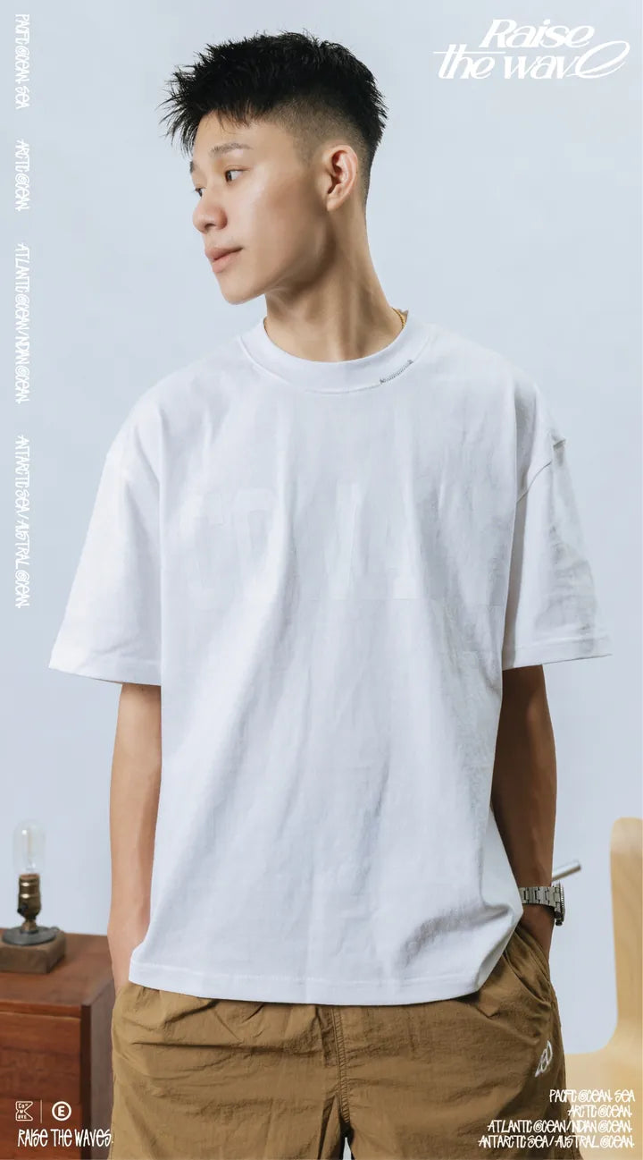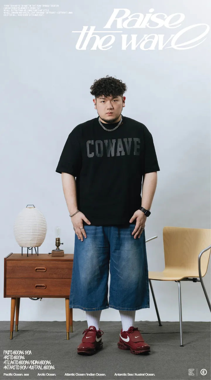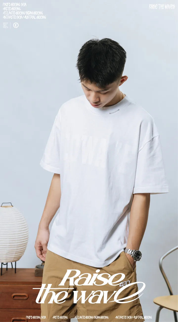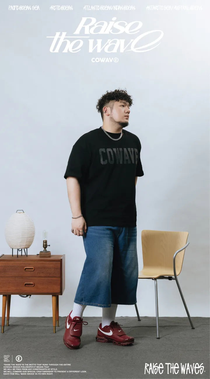 此款T-shirt 正面加入COWAVE美式大學風格字體,印花顏色同佈底色,印花光澤與面料呈現出若影若現的質感,在不同光線下呈現出的光澤感也能有所不同。