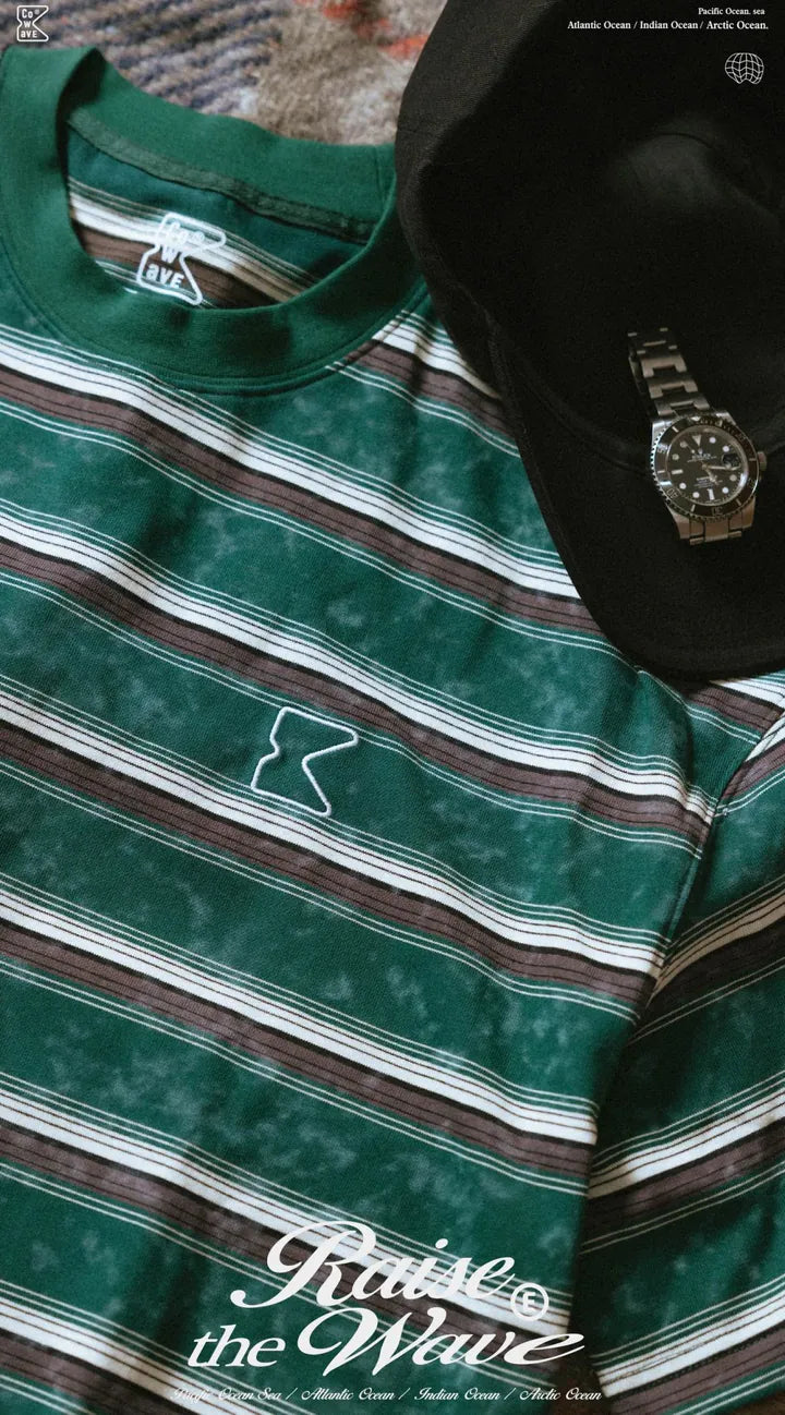 本季COWAVE靈感來自海水沖刷岸邊留下的痕跡。我們相信每一件衣服都像經過時間與浪潮雕琢的石頭,帶著屬於自己的紋理與故事。這次的 Washed Stripe Tee 不只是條紋 T,更是一種「穿上潮流痕跡」的生活態度。
