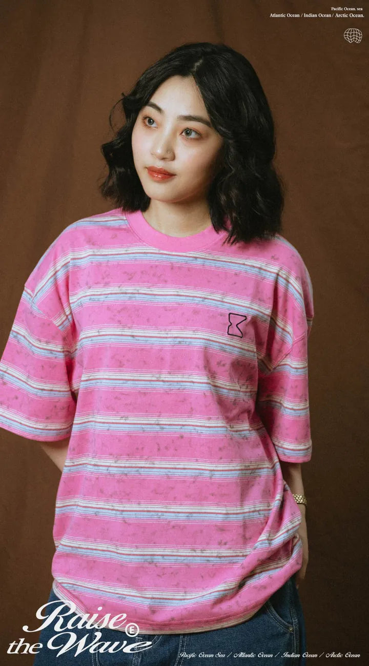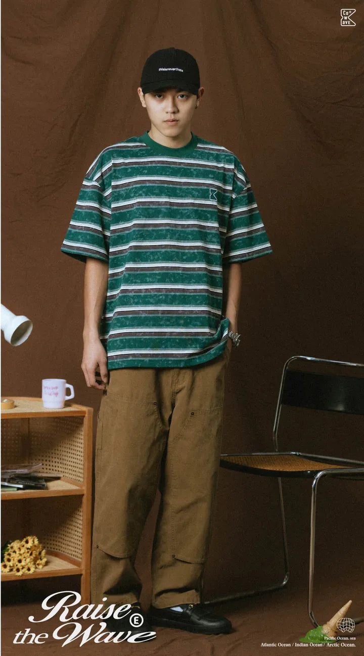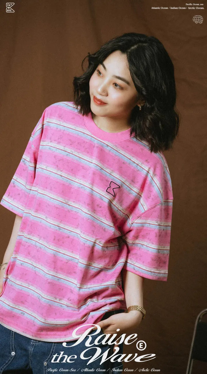 COWAVE 2025 Spring & Summer Washed stripe Tee