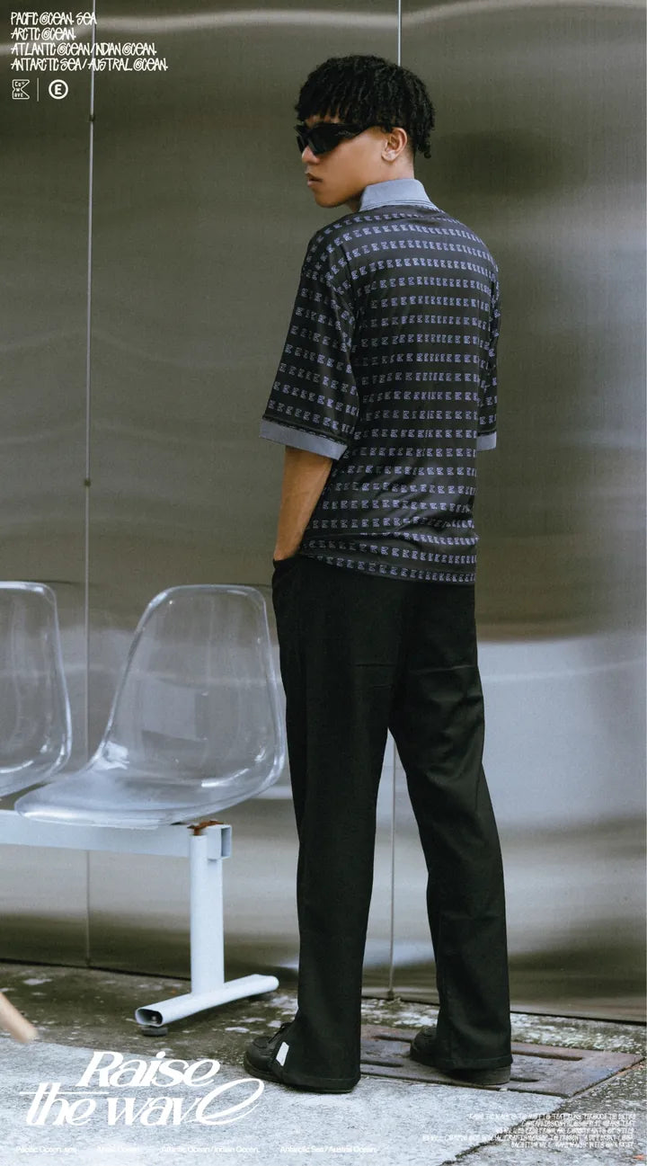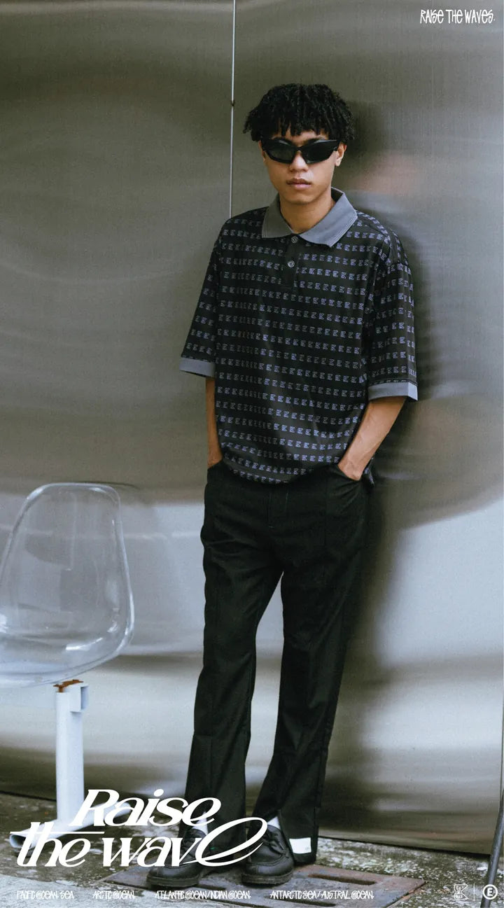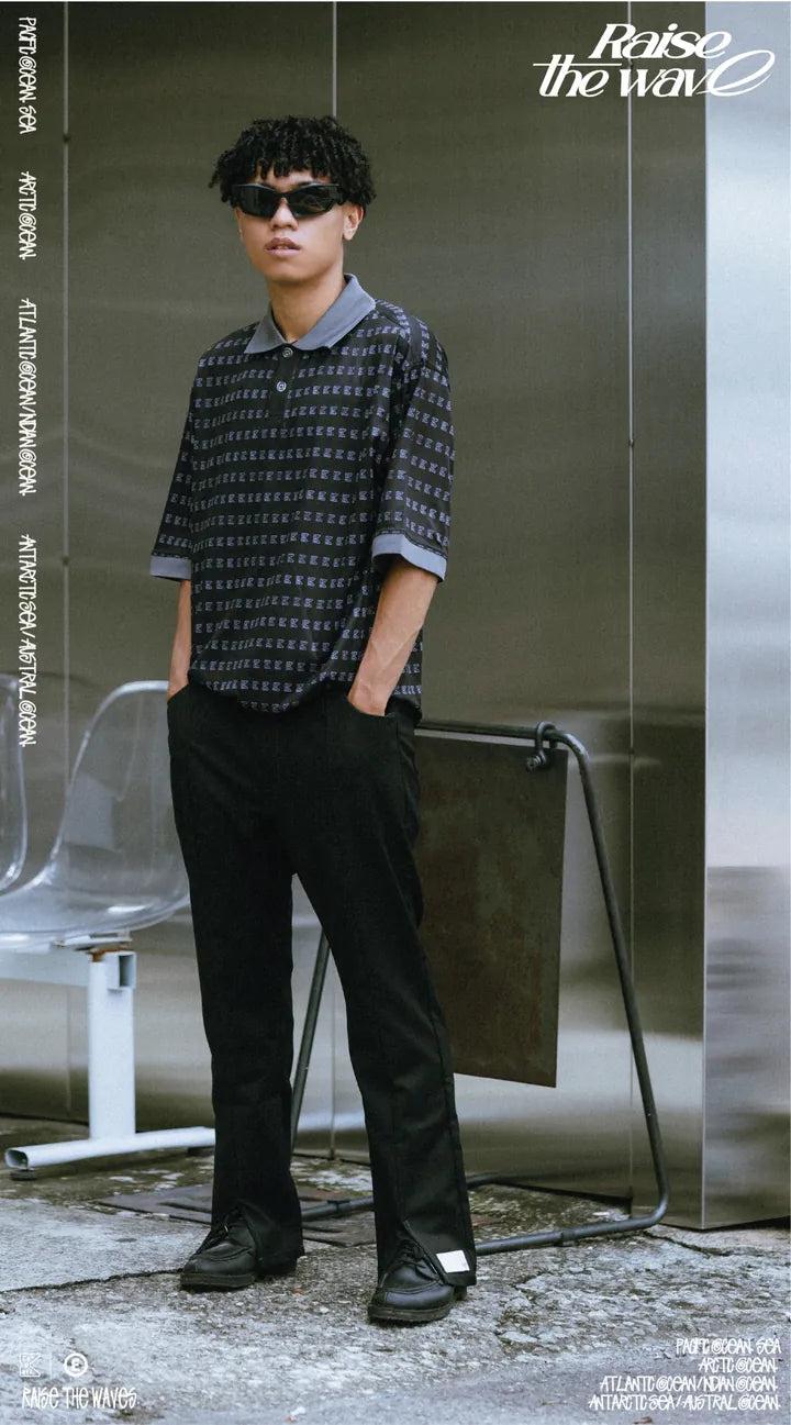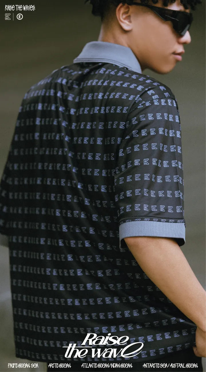 灰色的領子和袖口與滿版LOGO相互呼應,使這款POLO衫在細節處理上更加完整豐富。