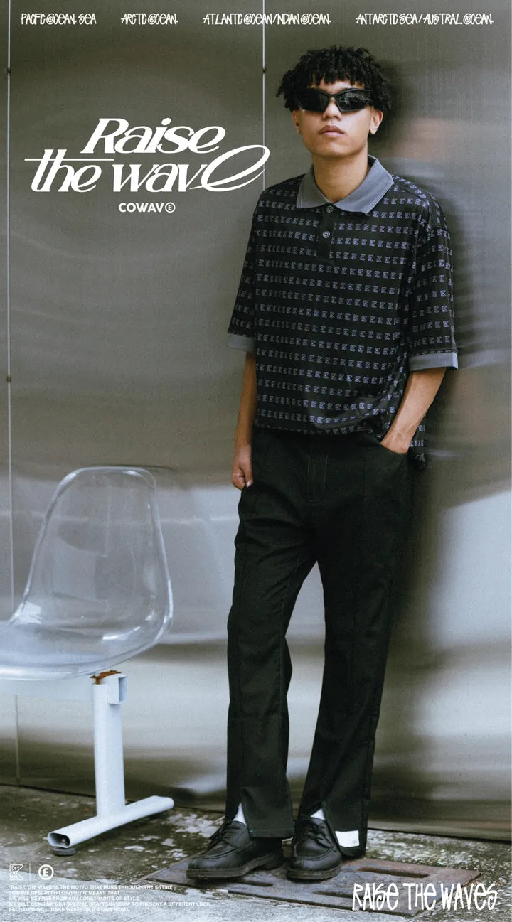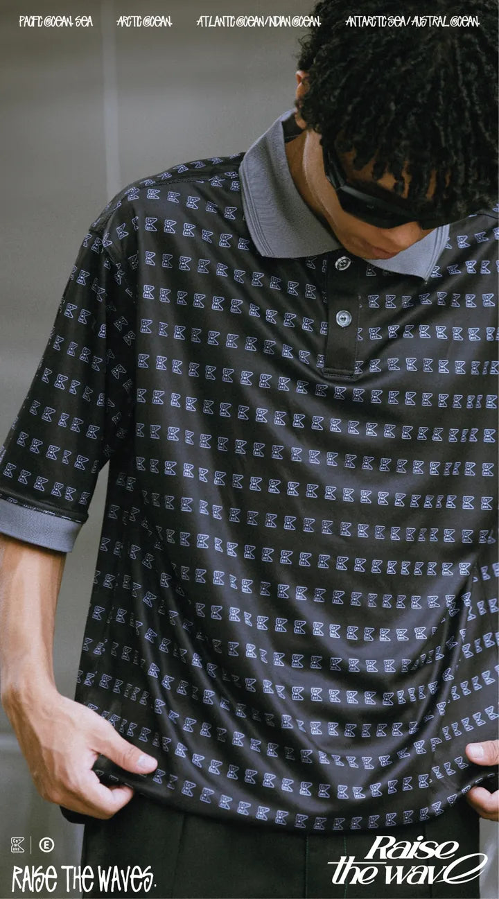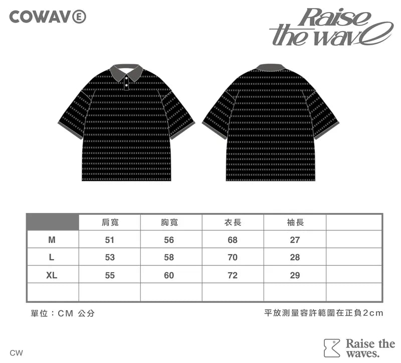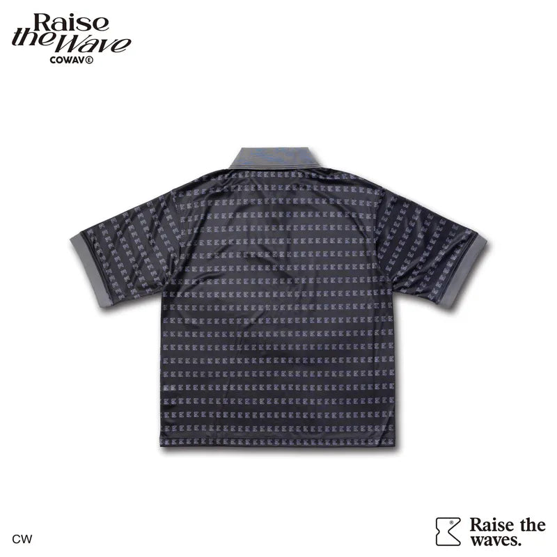 本次設計的POLO衫靈感源自Blokecore足球衫風格,以黑色為基底,整體採用COWAVE灰色LOGO滿版設計,低調而不失質感。