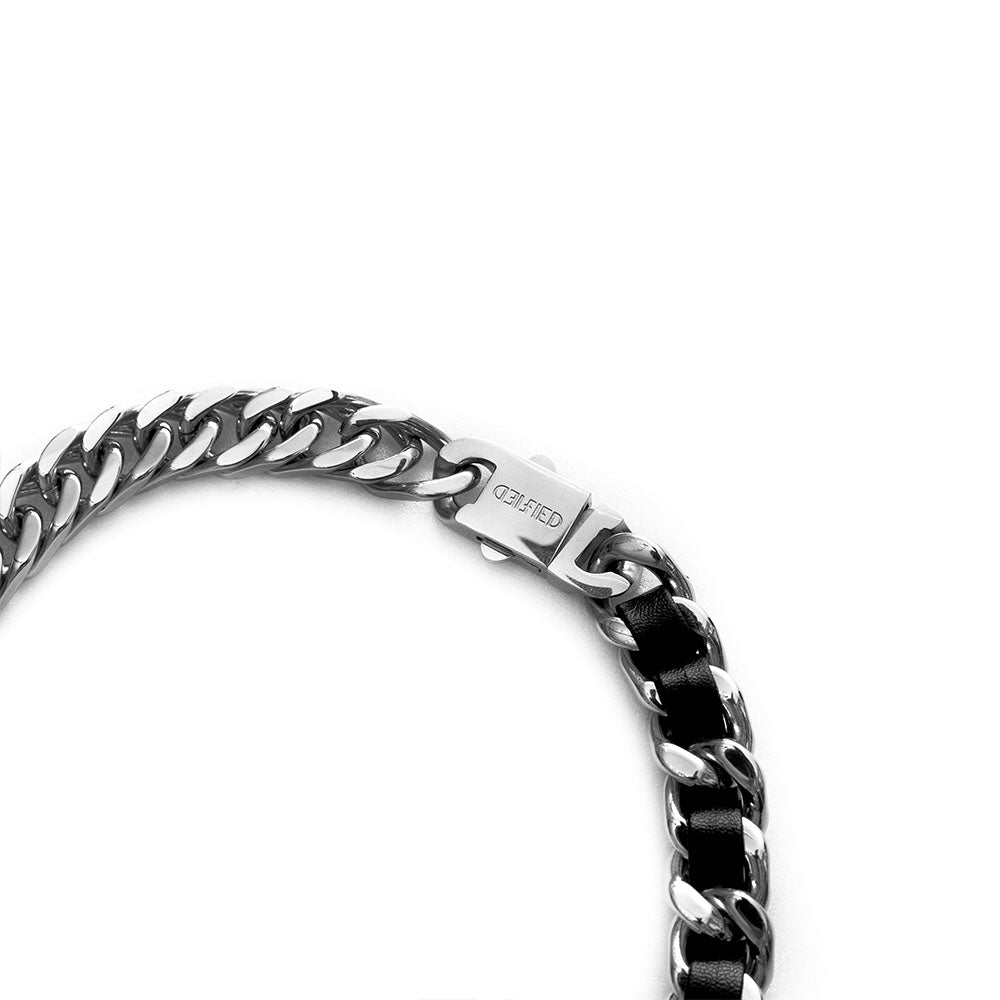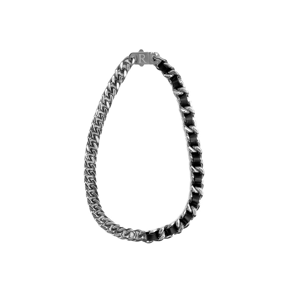 - 皮革質地與鋼材的穿插變化,帶有雙向圖特色之品牌融合,在迴圈中連接成新的飾品樣貌。