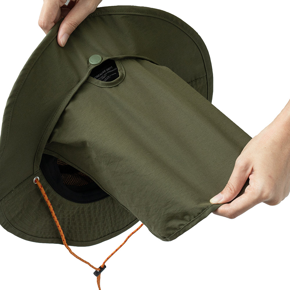 特別規劃的可收納式防曬遮陽布,為戶外活動時易曬傷的後頸提供良好的保護機能。
