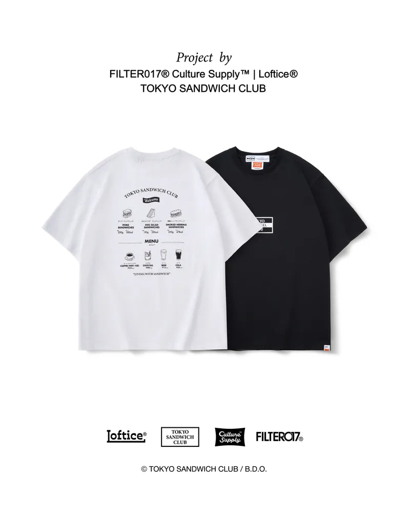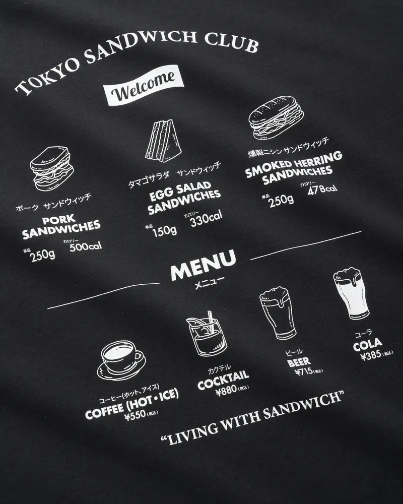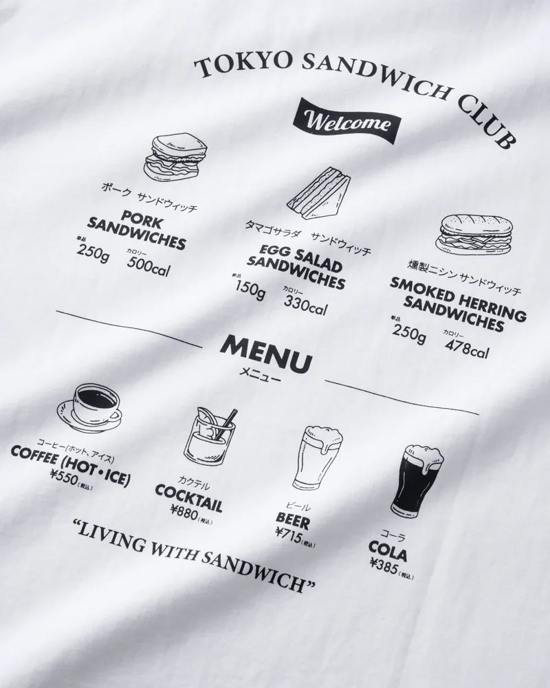 以 Tokyo Sandwich Club 品牌經典菜單圖像作為主視覺,嚴選高品質棉料製作,並採用符合東方人身形的微寬鬆版型,整體材質與輪廓於日常生活帶來舒適俐落的穿著體驗。