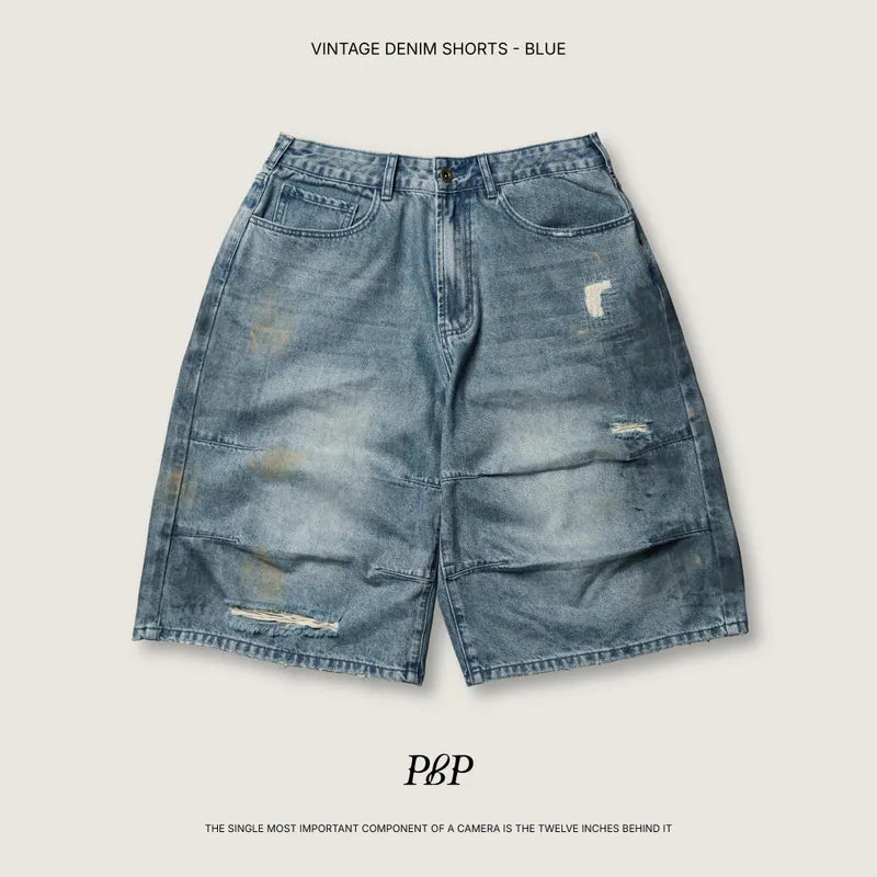P.B.P - VINTAGE DENIM SHORTS - BLUE