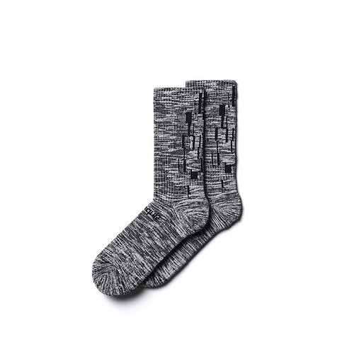 採用Transcendence 主題圖像延伸全新幾何圖像,融合 nozzle quiz 三線紗編織製作。製造出數位化雜訊線條的視覺效果。襪子採用機能 Skinlife® 及 Lycra® 的紗線製作,傳達現代視覺美感和舒適度共存的理念傳遞。