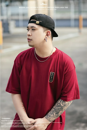 WODEN 2021 Spring & Summer Vintage Sign Logo tee 酒紅色