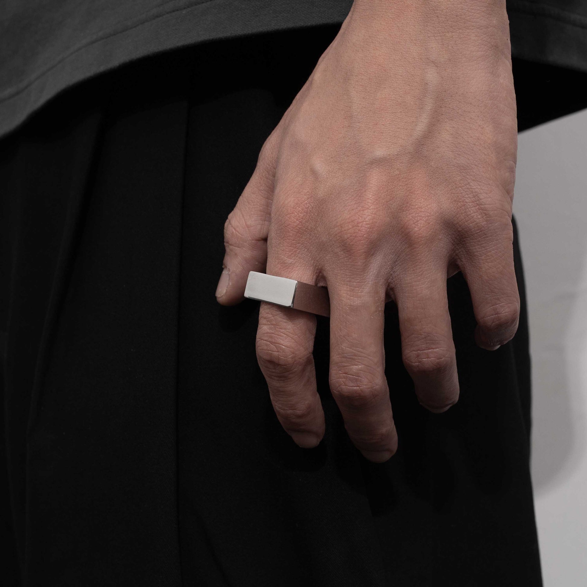Recovery 基本四方平面戒指 (亮銀)
