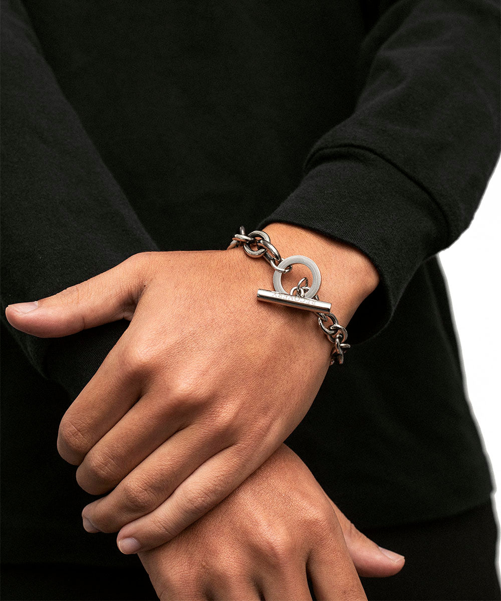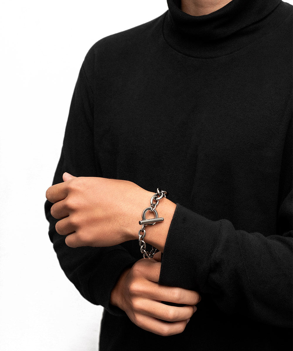 - 品牌經典設計思想,各自對半的粗細不一鍊條