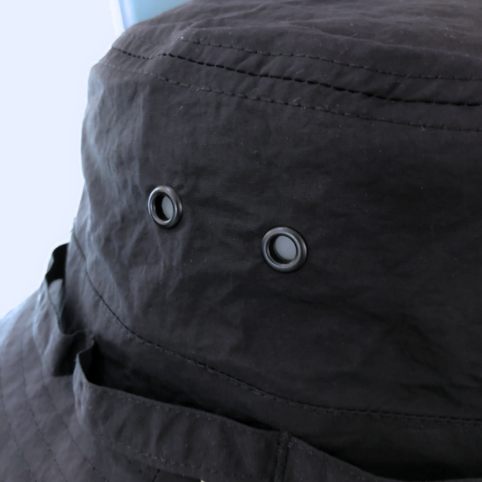 VINDAY Bucket hat 面料具備防潑水、抗汙的機能性。布料軟硬度挺身,令帽型能長期維持。另外設計上也盡量減少內部面料、帽側加上透氣孔設計,使排汗散熱更加快速,提升配戴舒適度。
