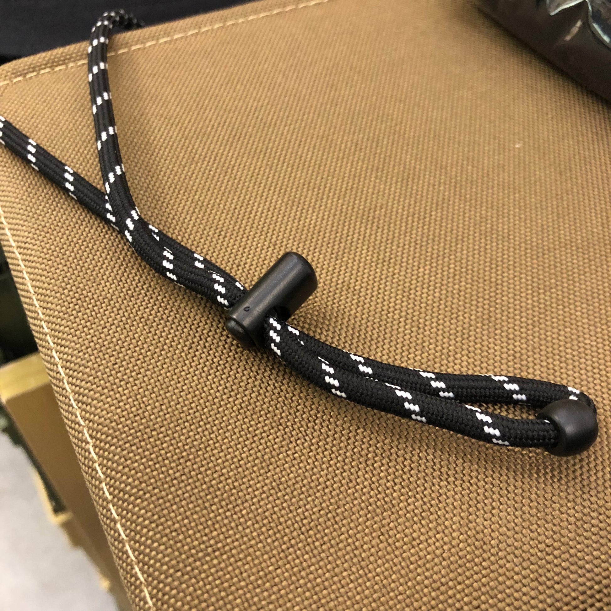 另隨帽附送鈎掛繩,可在休息時掛頸或大風時套緊防止吹掉。黑色白點的設計更可在黑夜容易找到,在穿搭上也加些點綴,提升整體穿搭感。