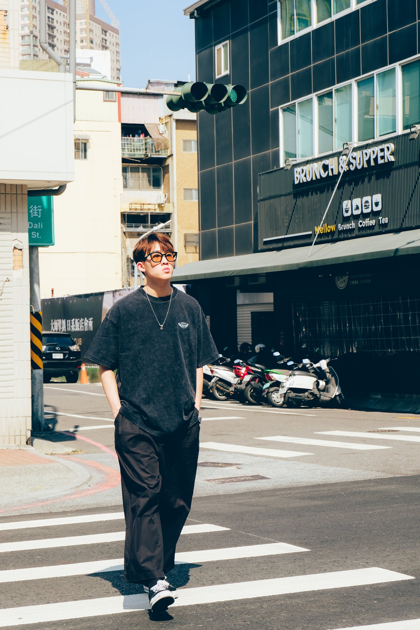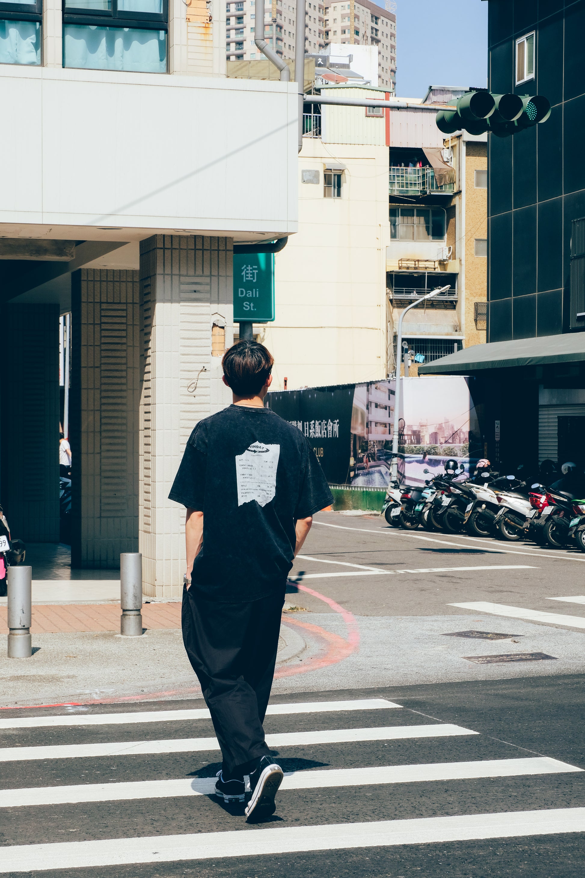 採用染色洗水工藝和寬鬆版型,呈現日系感氛圍。本次的單品比起VINDAY以往的Tee版型在肩寬和胸寬上更爲寬鬆,衣長則略為加長,使整體著用比例更具日系感。