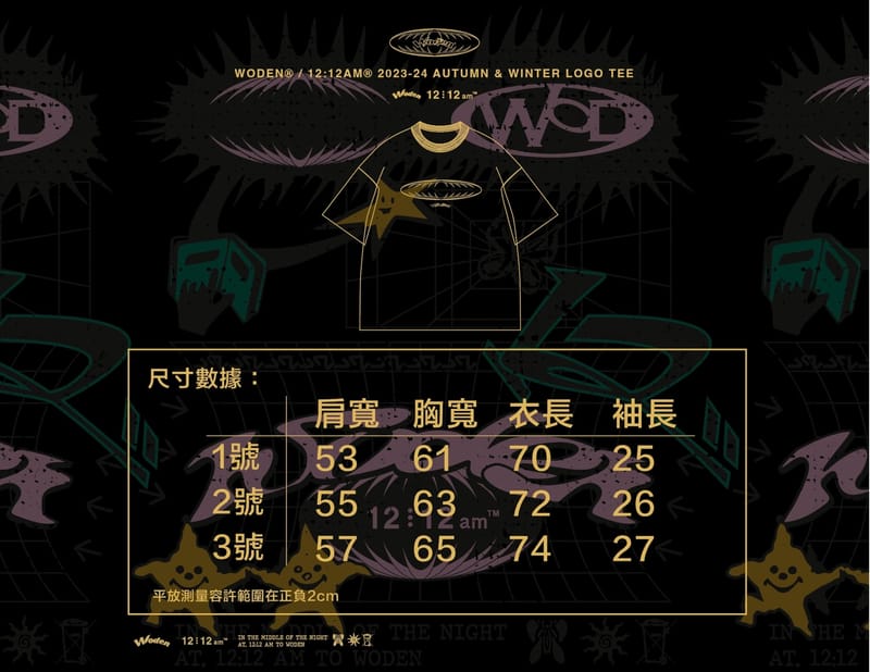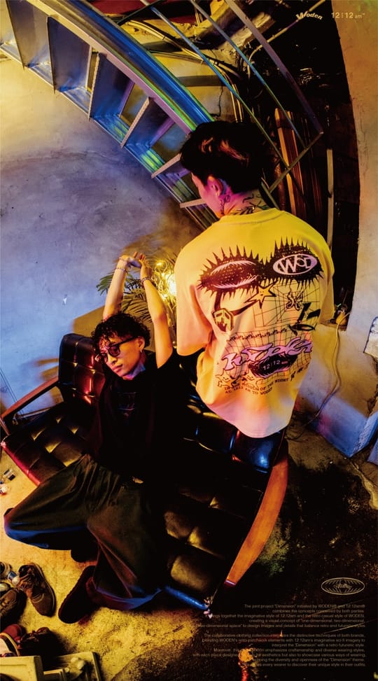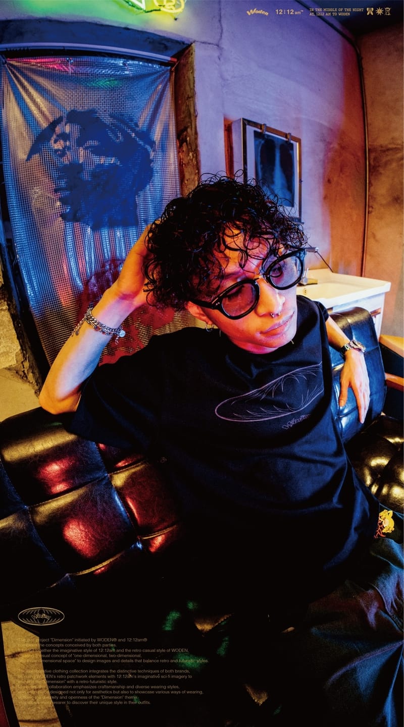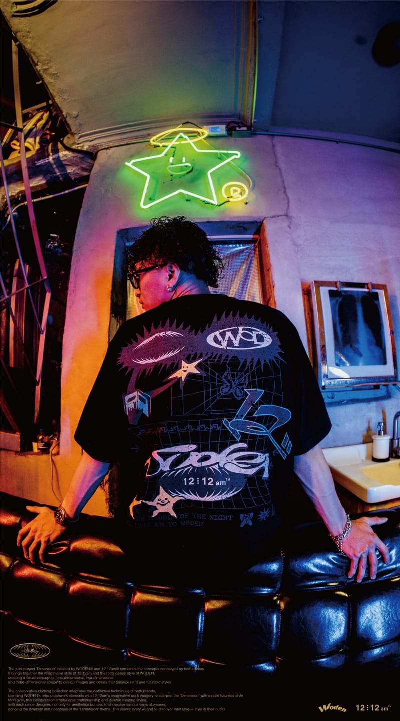 由WODEN® 與12:12am® 共同發起的聯名企劃『維度Dimension』,結合雙方共同發想的概念。將12:12am異想天開的思維風格與WODEN復古休閒風格互相碰撞,透過“一維、二維和三維空間”的視覺概念,設計出平衡復古與未來科幻風格的圖像與單品細節。
