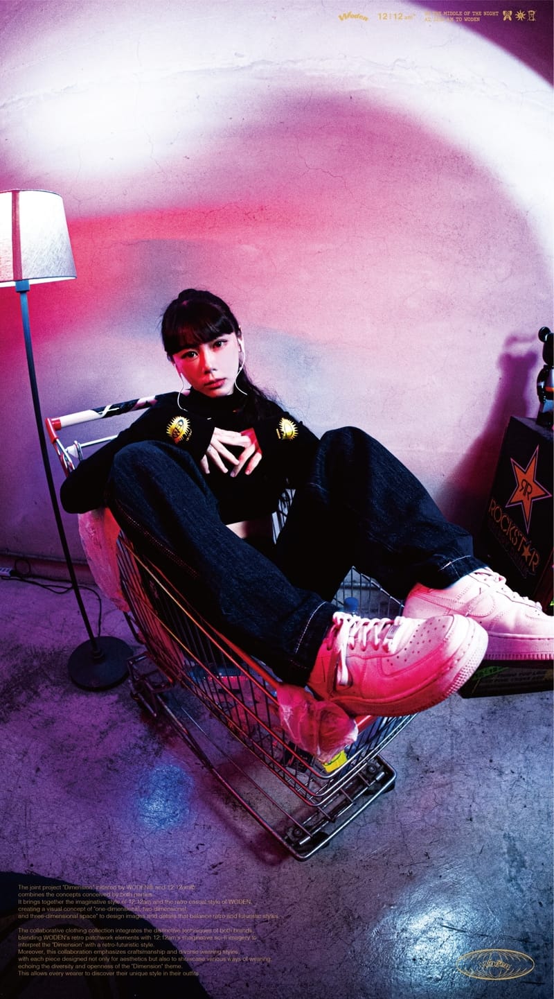 由WODEN® 與12:12am® 共同發起的聯名企劃『維度Dimension』,結合雙方共同發想的概念。將12:12am異想天開的思維風格與WODEN復古休閒風格互相碰撞,透過“一維、二維和三維空間”的視覺概念,設計出平衡復古與未來科幻風格的圖像與單品細節。