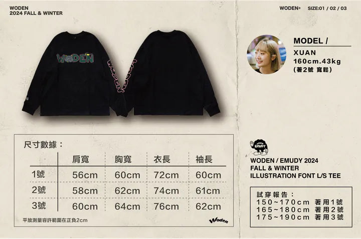 WODEN® / Emudy 2024 Fall & Winter illustration Font L/S Tee