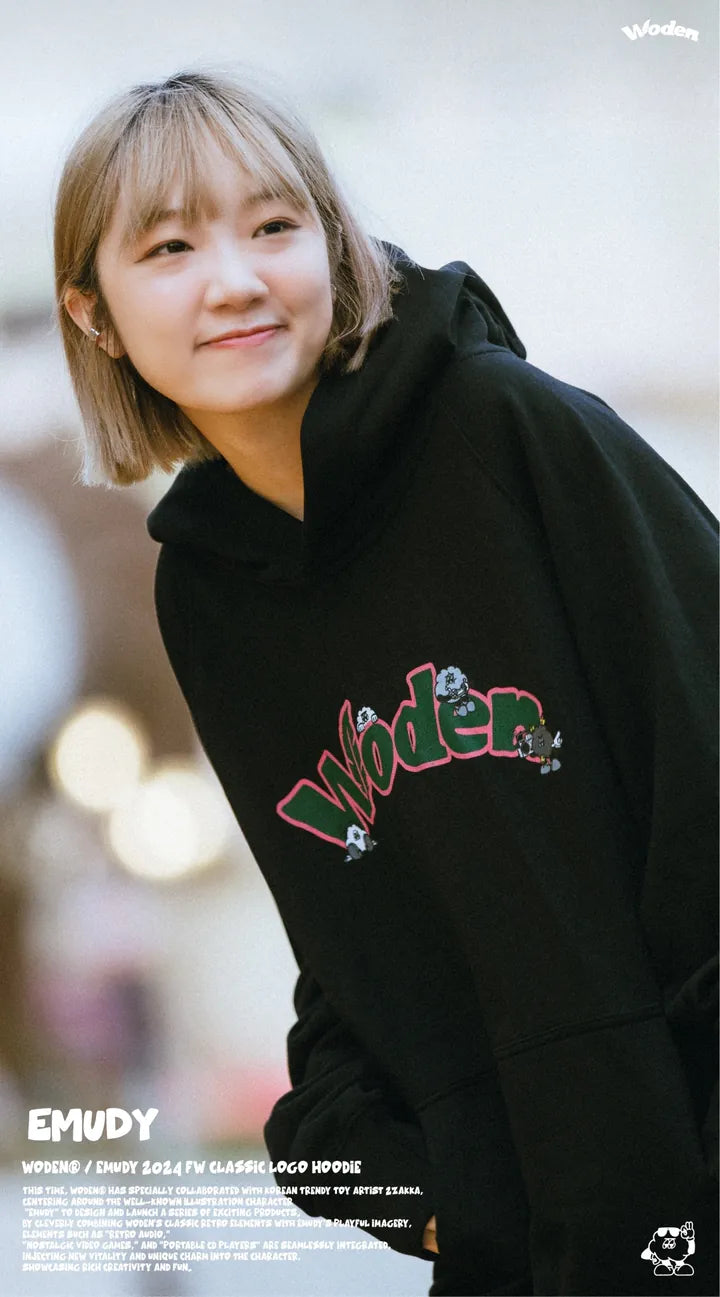 그리하여 Emudy는 날씨를 표현하는 구름처럼 우리의 다양한 감정을 아트토이로 표현하기 위해 디자인되었습니다.☁️"WODEN® / Emudy 2024 Fall & Winter Classic LOGO Hoodie