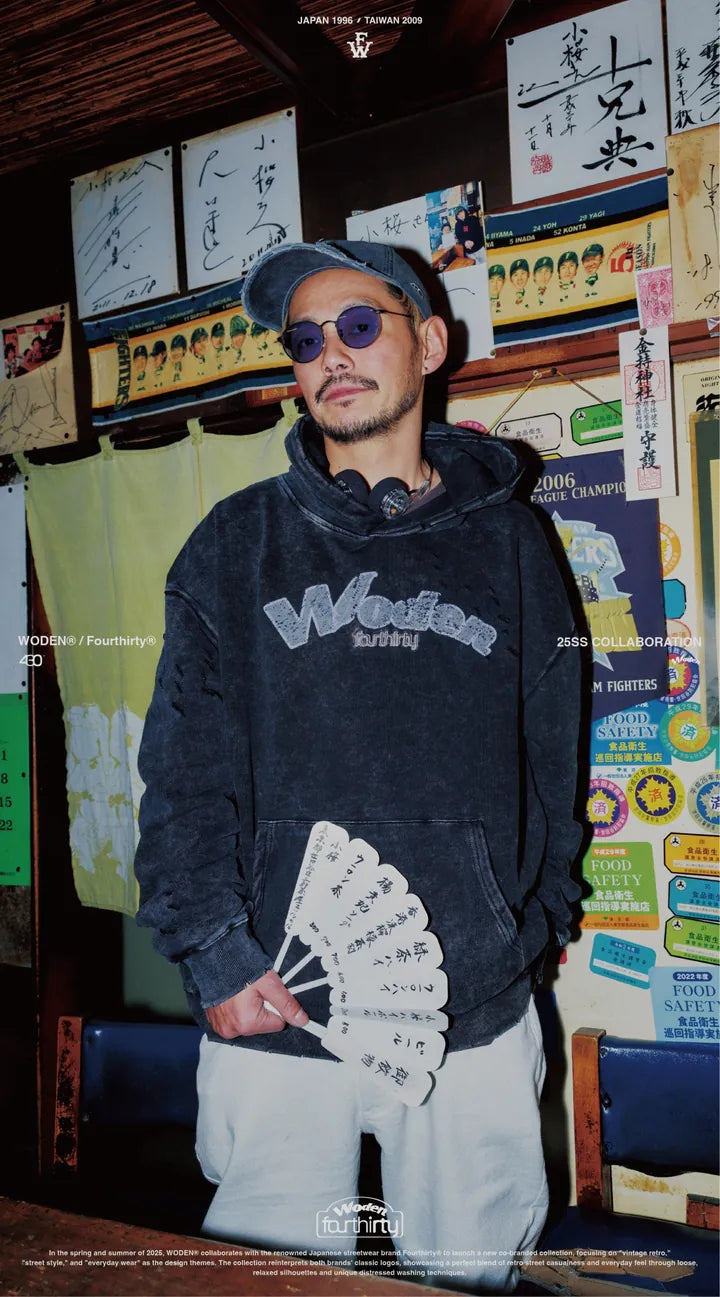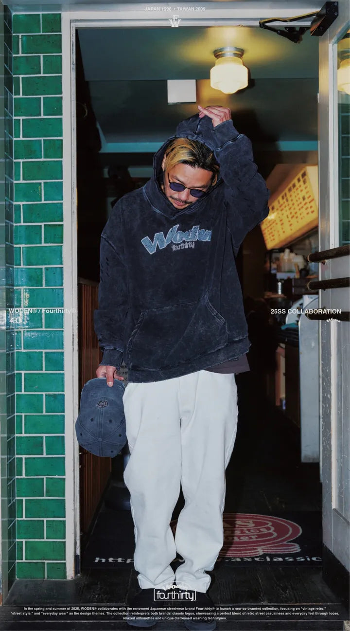 2025年春夏開季,WODEN®攜手日本知名街頭品牌 Fourthirty® 推出全新聯名系列,以「復古仿舊」、「街頭風格」與「日常穿搭」為設計主軸。系列單品將雙方經典 LOGO 重新詮釋,透過寬鬆休閒的版型與獨特的破壞水洗工藝,完美展現復古街頭的隨性與日常感。