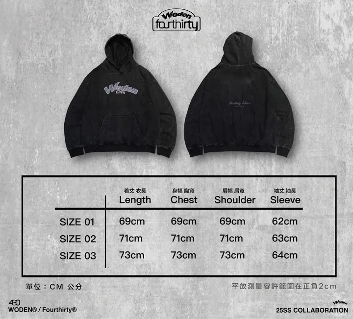 WODEN® / Fourthirty® 2025 Spring & Summer 001 Wash Classic LOGO Hoodie