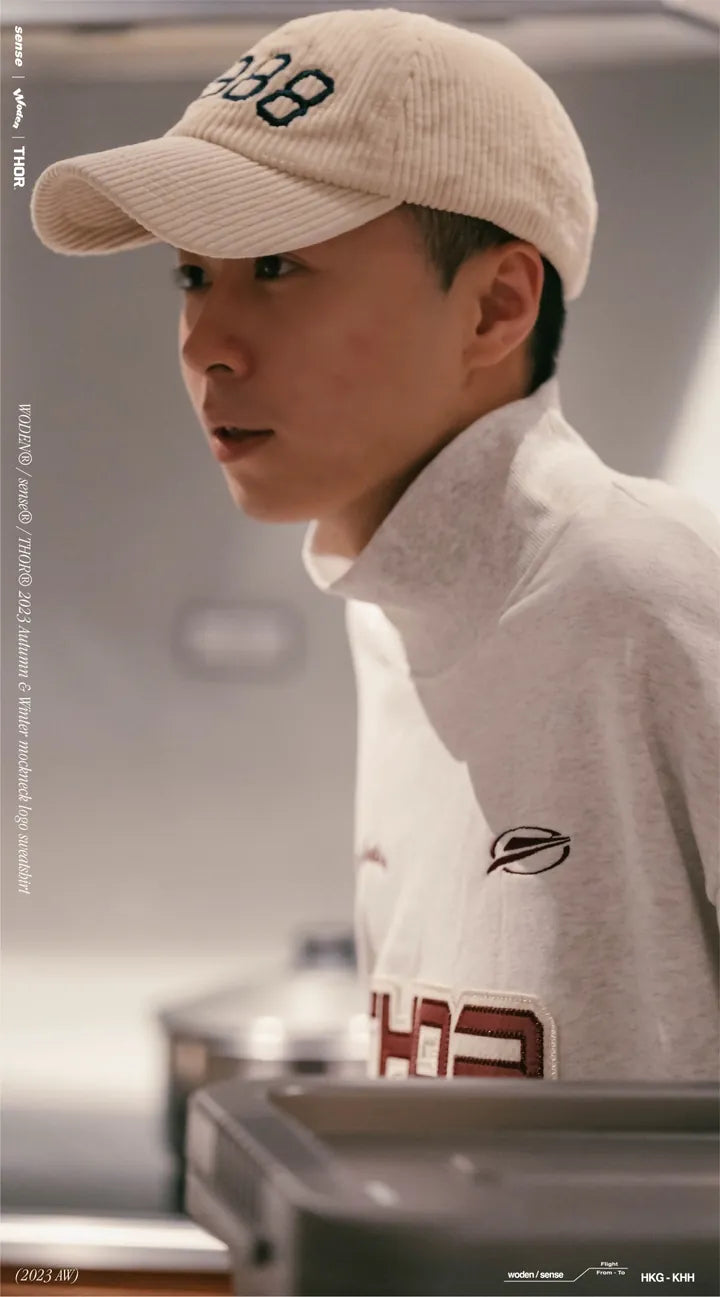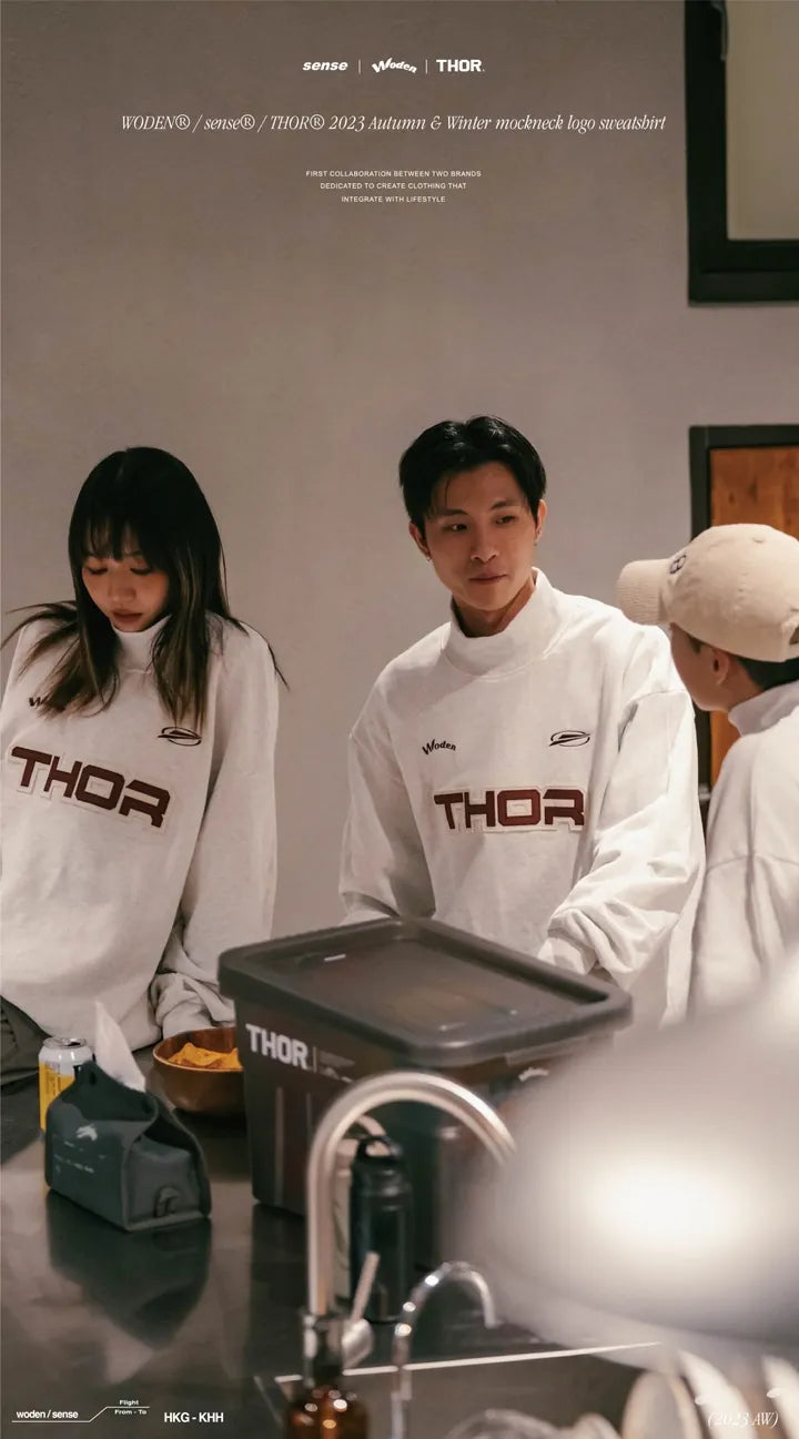 正面以三方LOGO作為主體,胸口以THOR®雙層貼布繡呈現立體感,並於上方左右分別加入WODEN® & sense® LOGO電繡,突顯品牌辨識度。了注入更多細節和個性,高領羅文處更特別加入了sense手寫電繡,使整體單品更加豐富且完整。