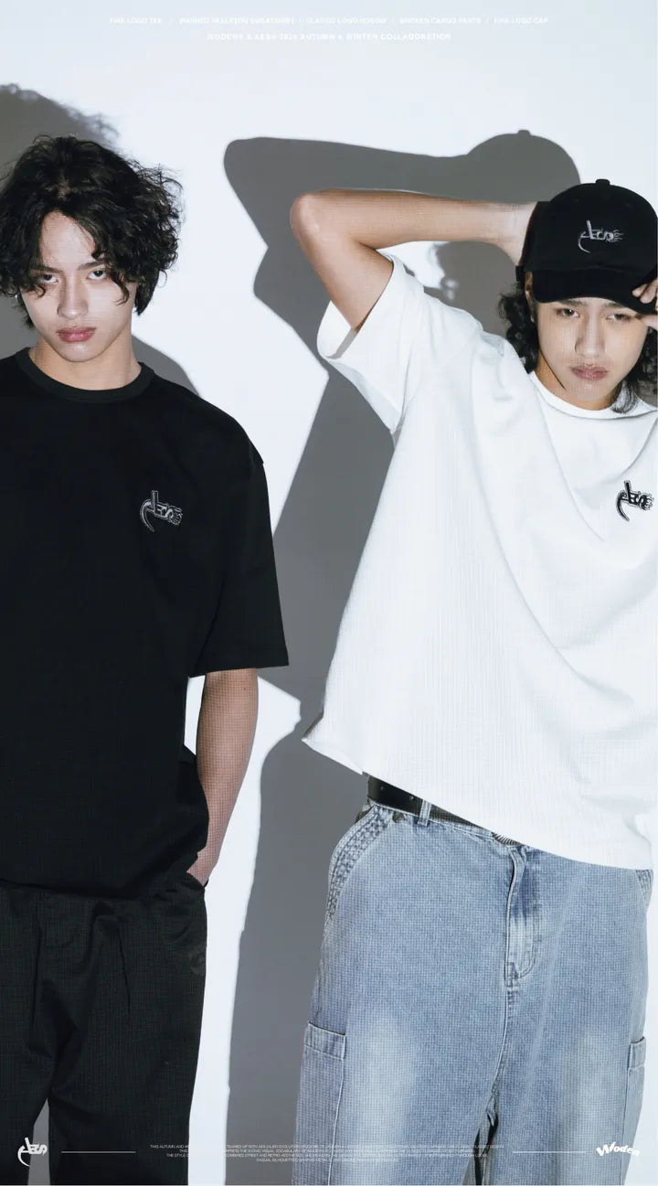 T-shirt 設計以文字排版為核心,採用「前小圖、後大圖」的印花布局,營造鮮明的視覺層次感。