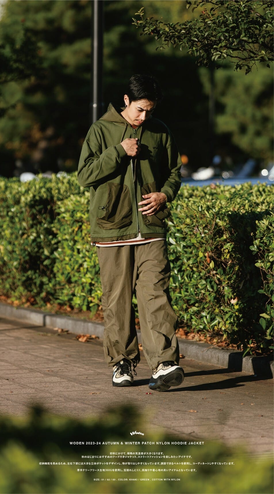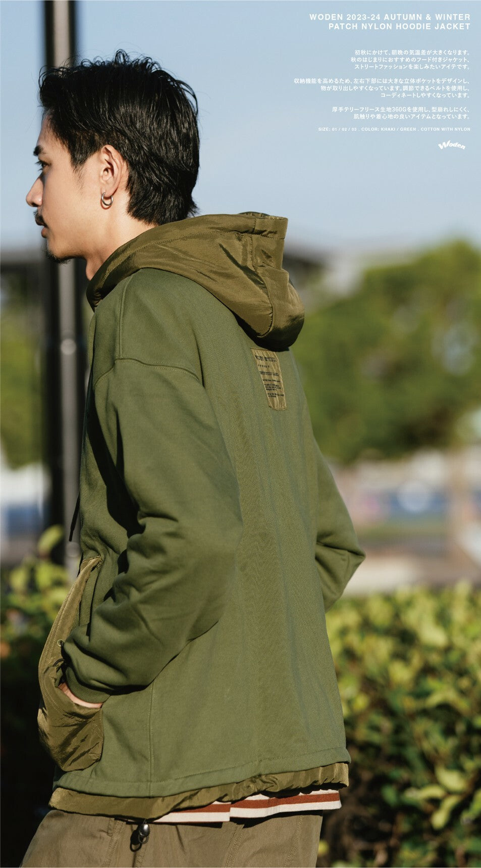WODEN 2023-24 Autumn & Winter 005 Patch Nylon Hoodie Jacket 綠色