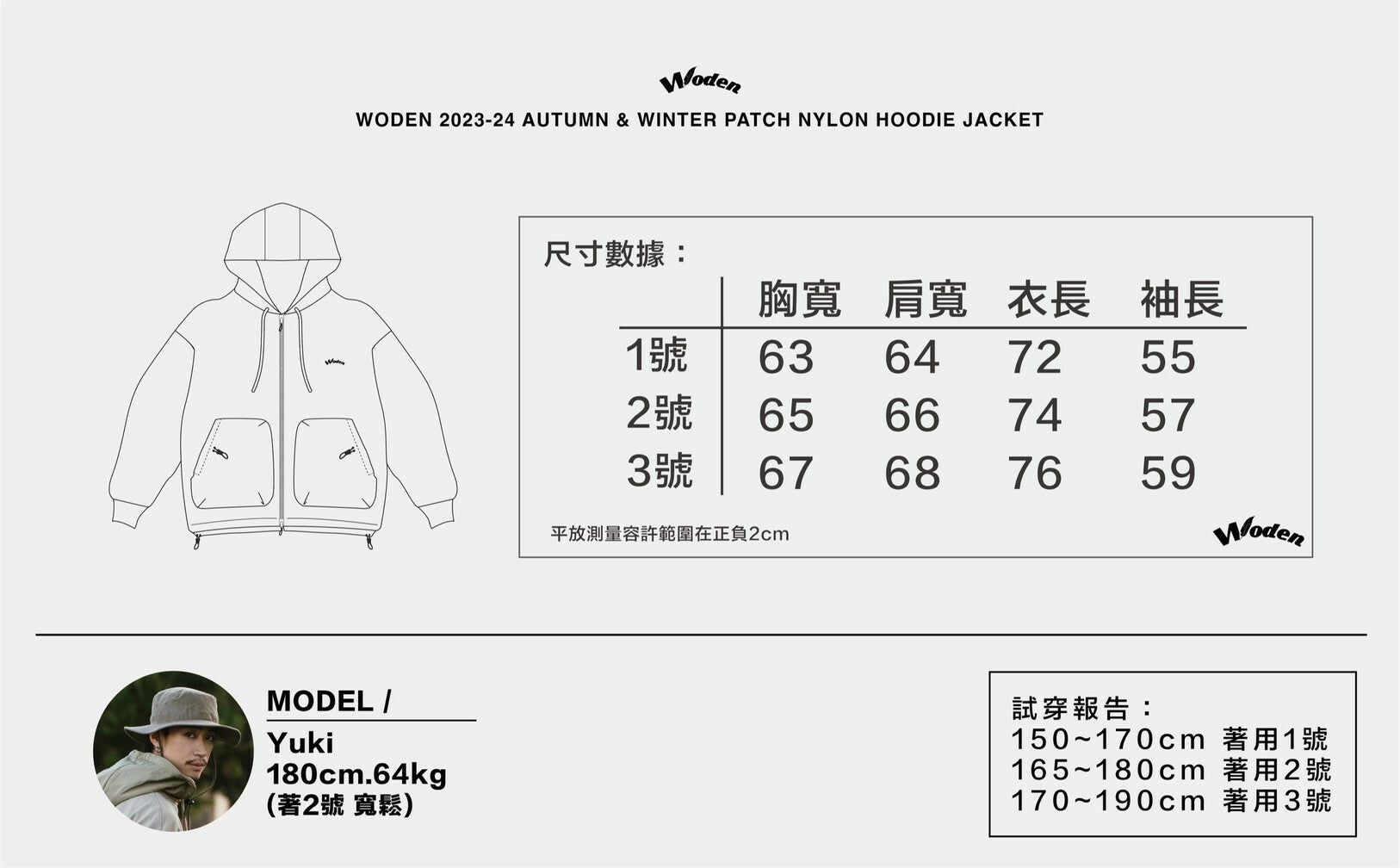 WODEN 2023-24 Autumn & Winter Patch Nylon Hoodie Jacket