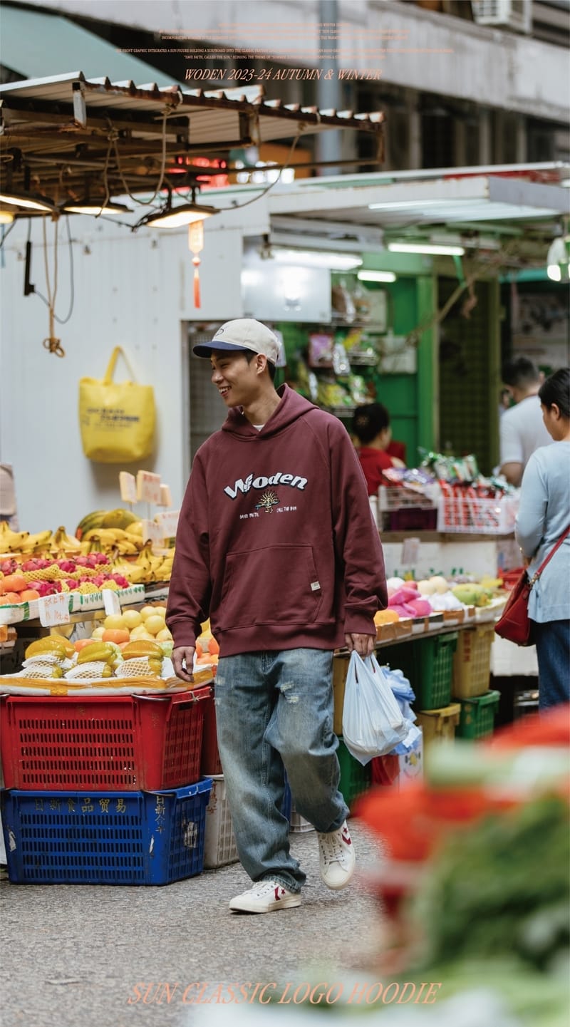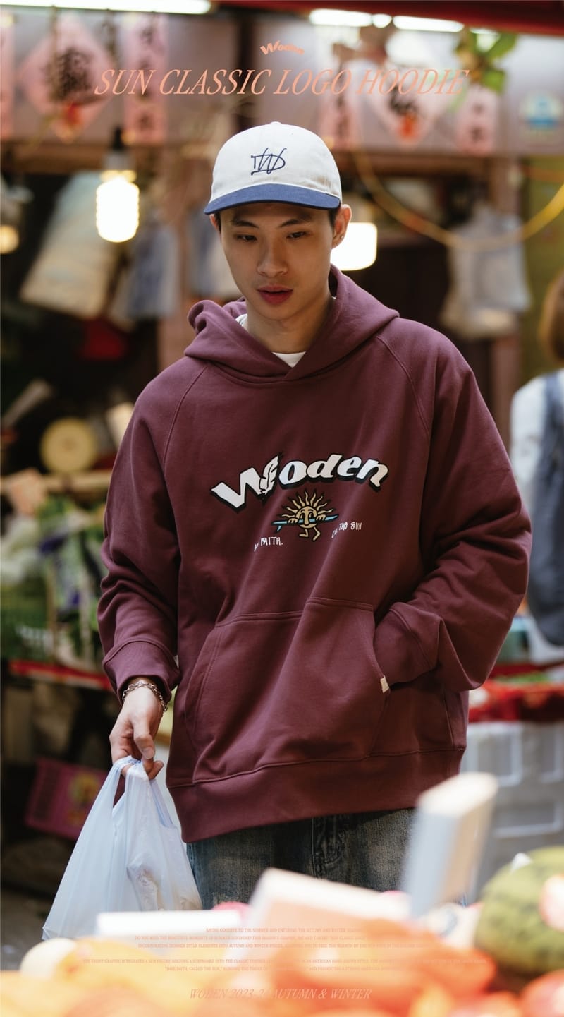 WODEN 2023-24 Autumn & Winter 015 SUN Classic LOGO Hoodie 酒紅