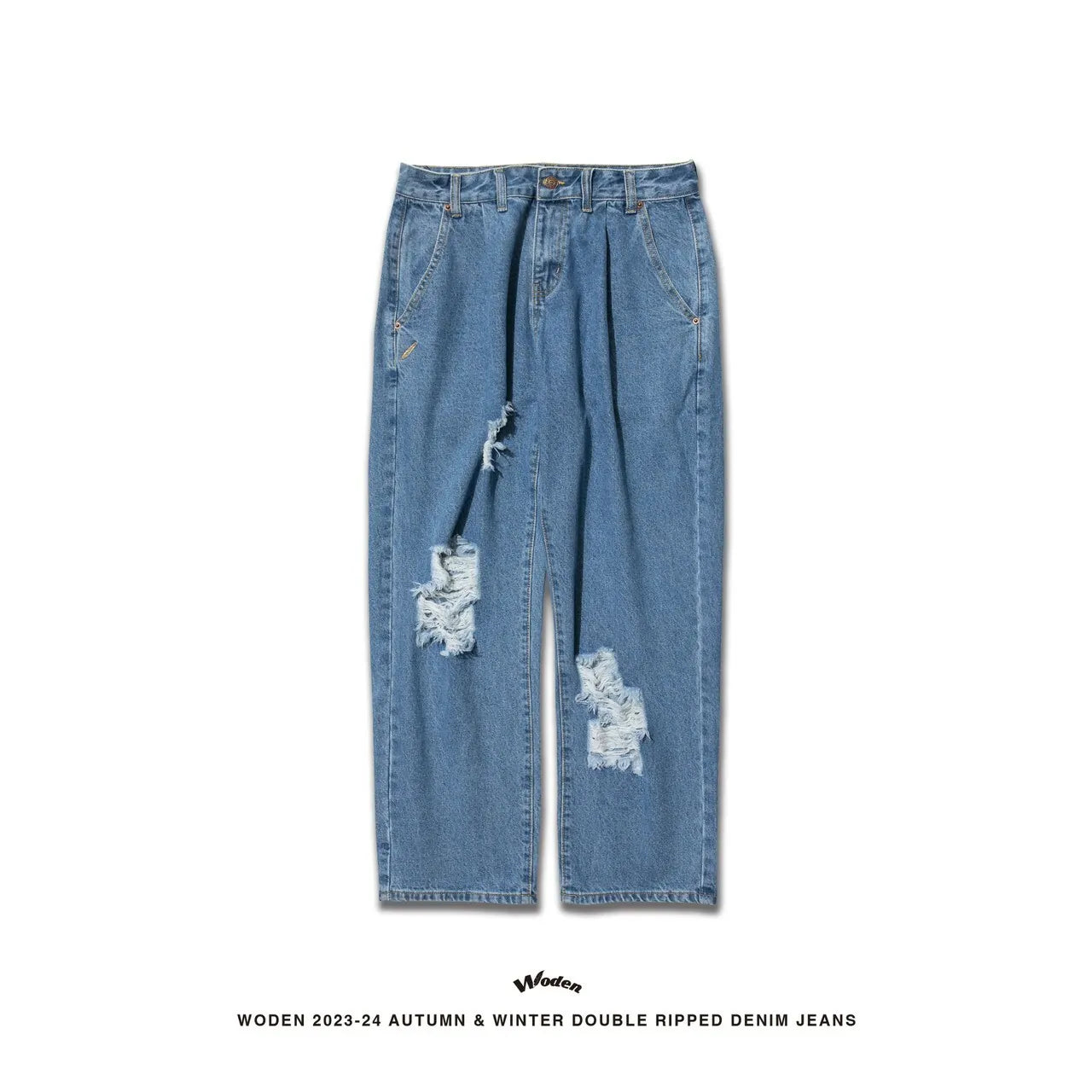 WODEN 2023-24 Autumn & Winter Double Ripped Denim Jeans