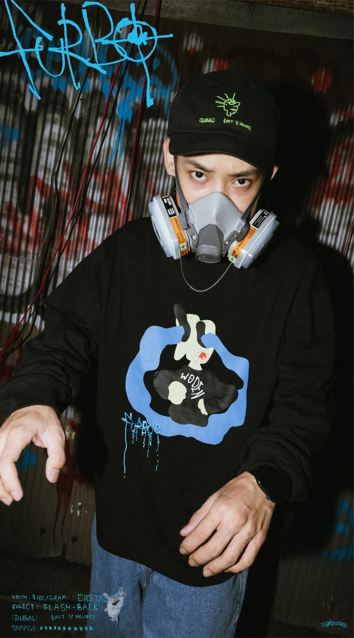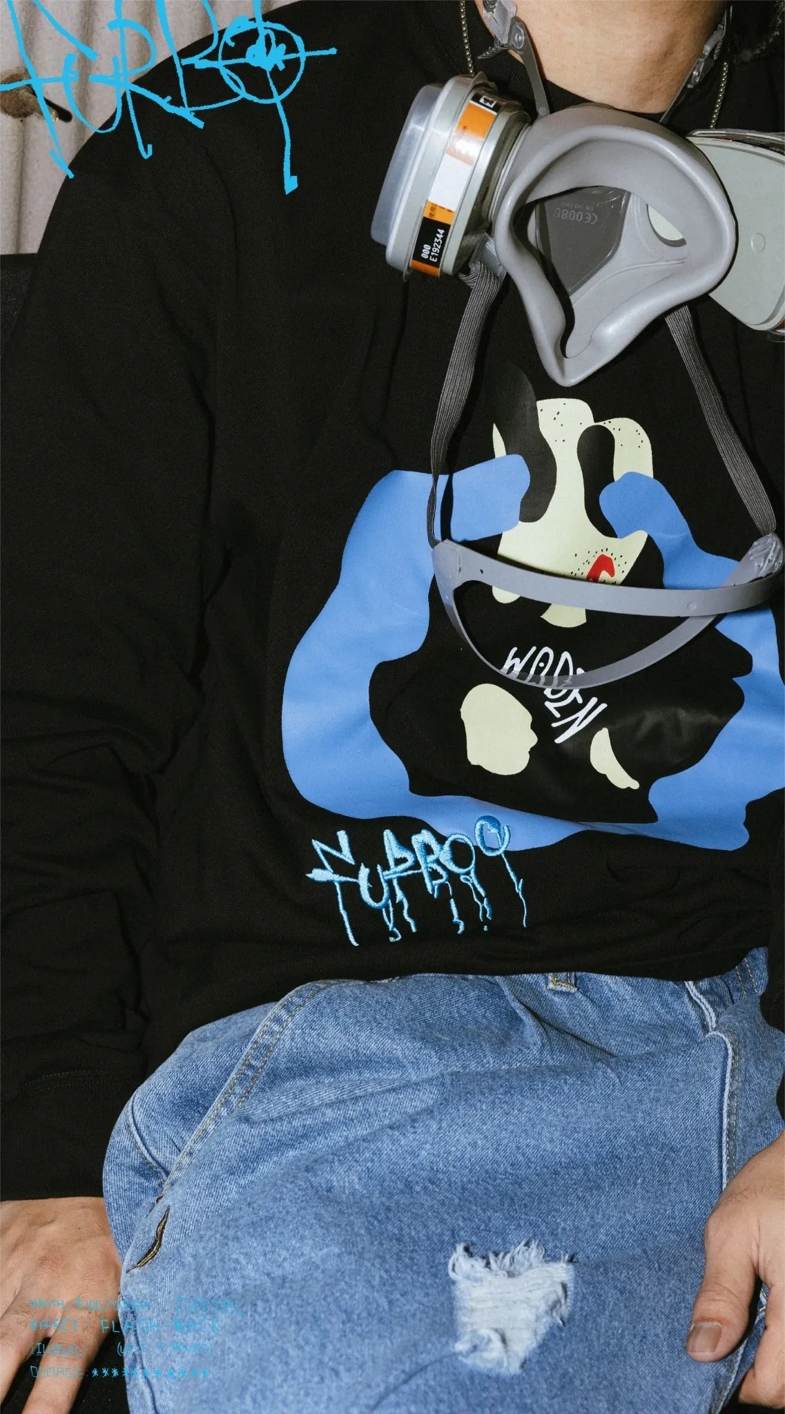 正面圖像採用網版印花呈現,使顏色更加飽和,細節更加清晰。此外,手袖上的圖騰印花也增加了整個圖案的豐富度,讓它變得更加完整。