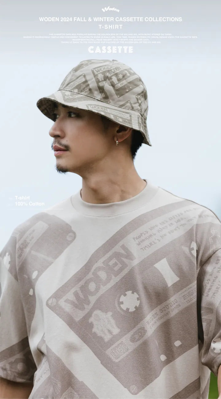 卡式磁帶Cassette流行於80~90黃金年代,音樂皆以磁帶作為儲存媒介,讓當時日常聽音樂變得越來越簡單方便。WODEN此次以卡式磁帶Cassette延伸視覺設計,採用滿版圖像排版融入在T-shirt 和 漁夫帽,將時空回朔至音樂流行文化豐沛的80~90黃金年代。
