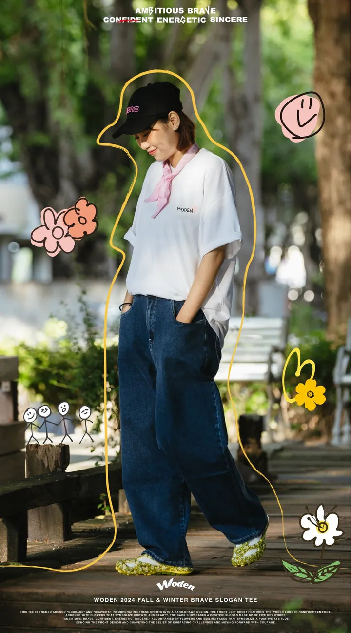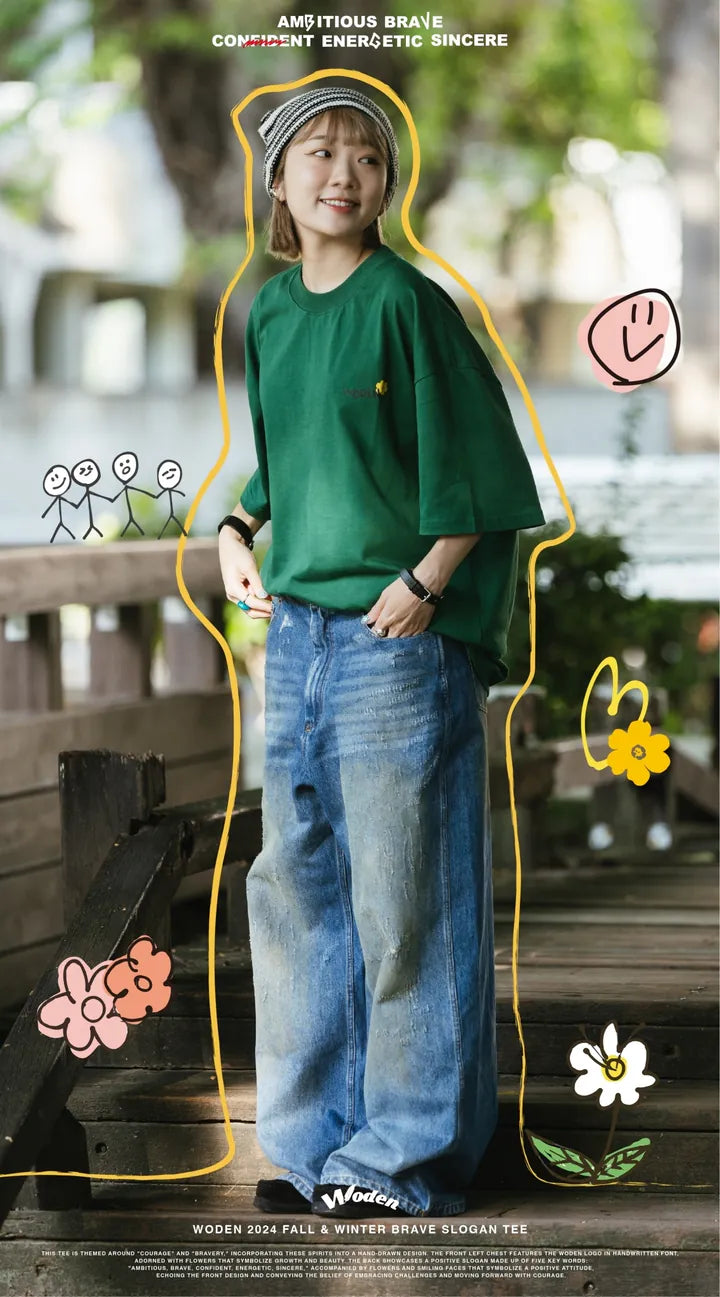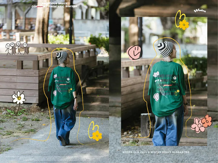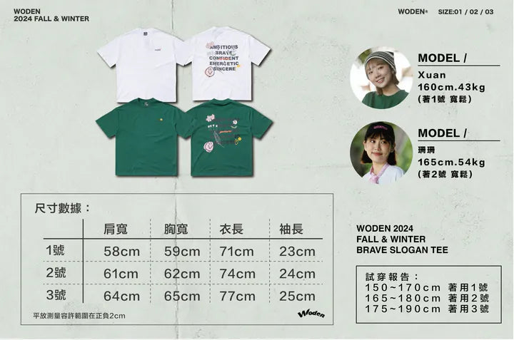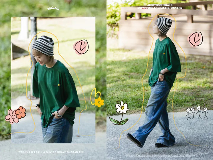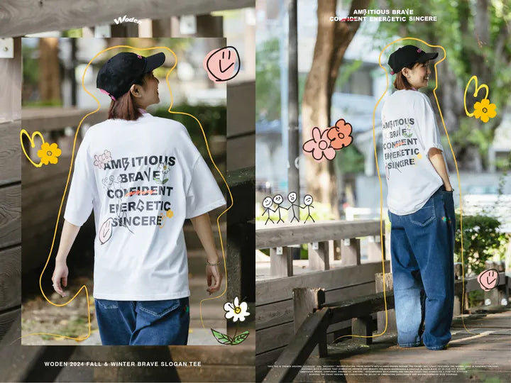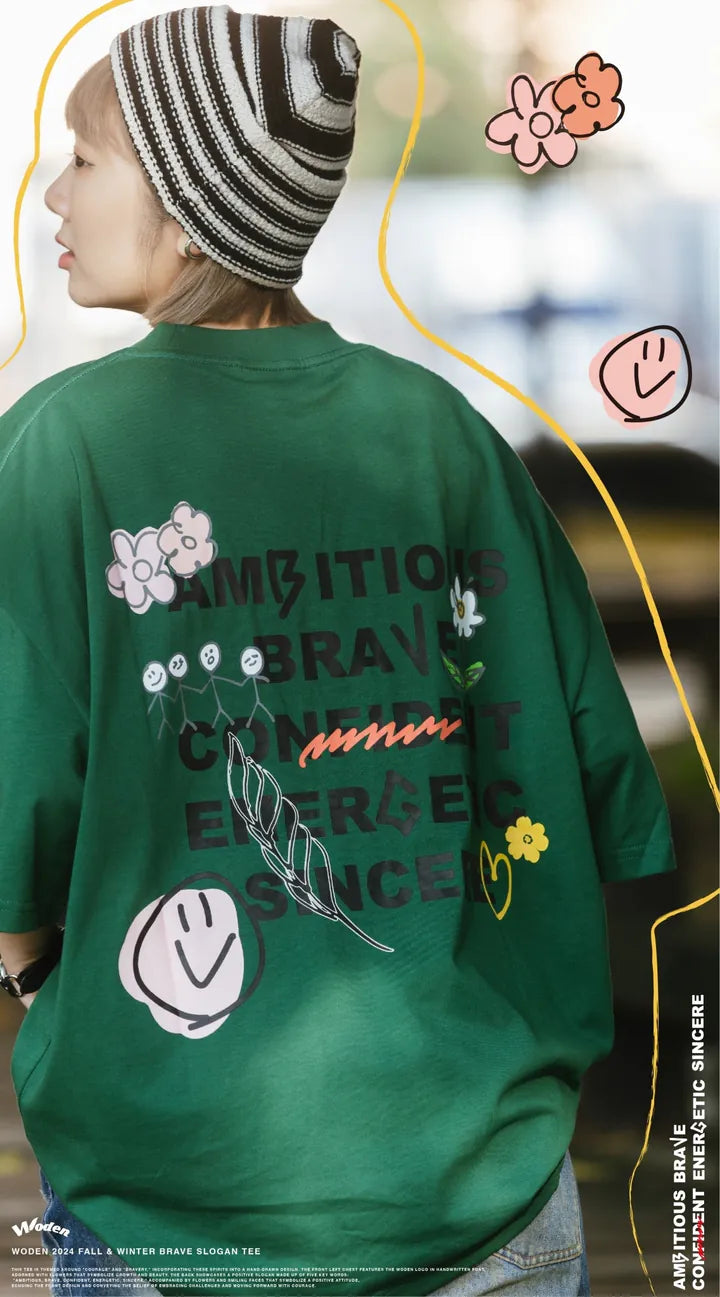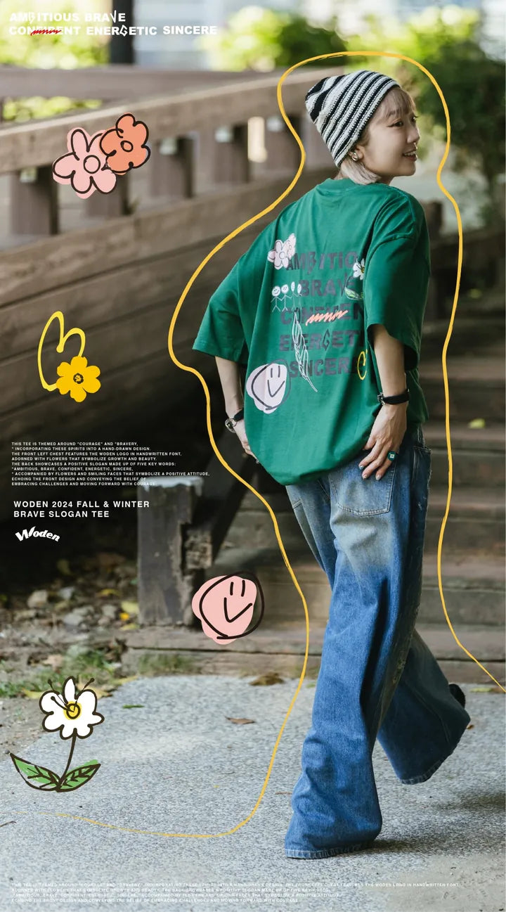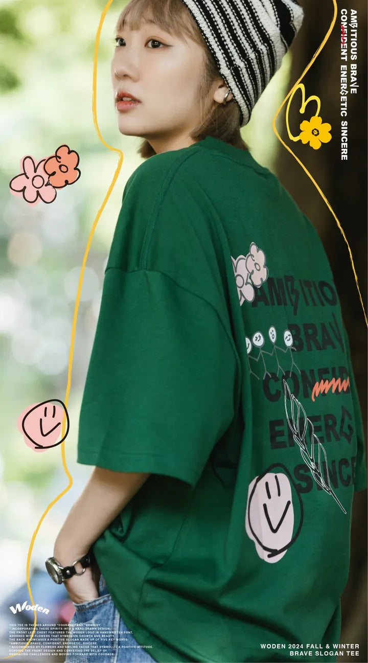 WODEN 2024 Fall & Winter Brave Slogan Tee