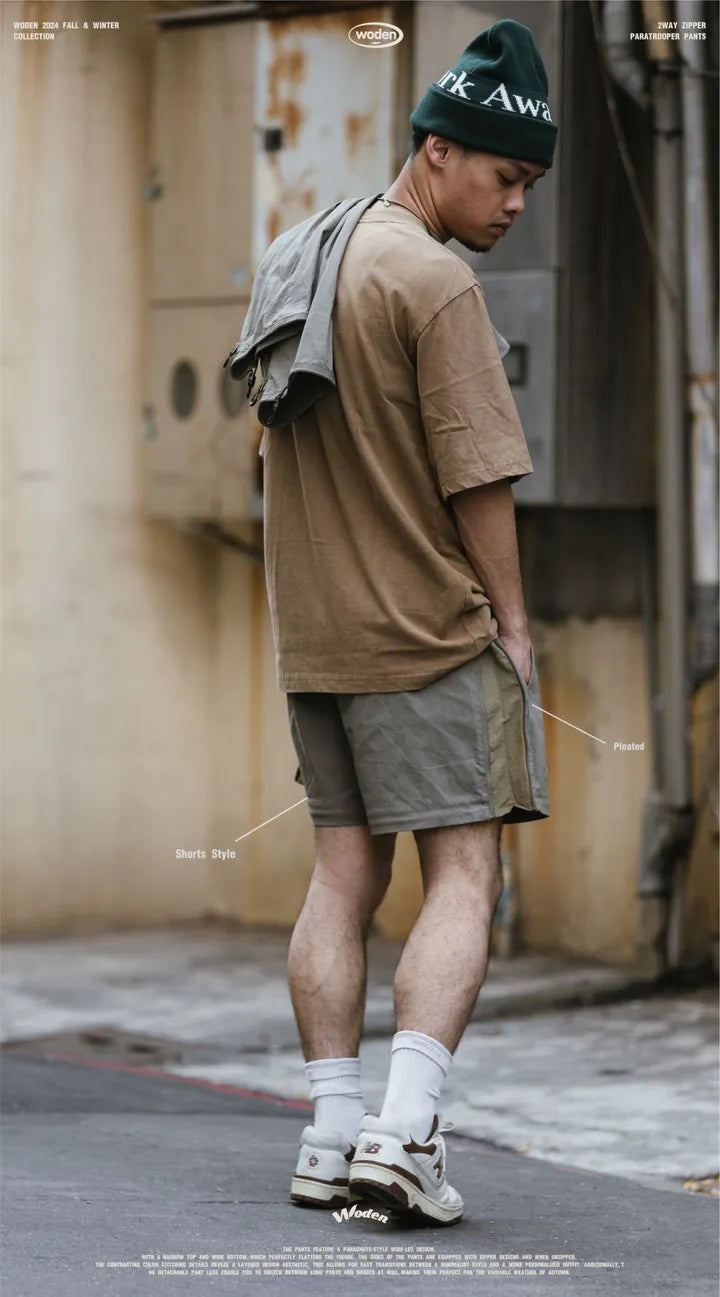 褲子採用傘兵闊腿褲版型,輪廓上窄下寬,更能完美修飾身形。褲身兩側設有拉鍊設計,拉開後內裡的撞色拼接細節展現出層次設計感,不論是簡約風格還是個性穿搭,都能輕鬆切換。而可拆式褲管設計,讓你能隨心所欲地在長褲和短褲間切換,非常適合秋季的多變天氣。