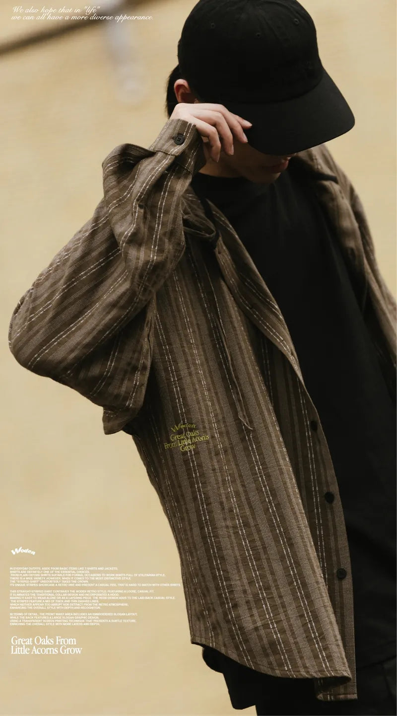 WODEN 2024 Fall & Winter 023 Straight Strip Hooded Shirt
