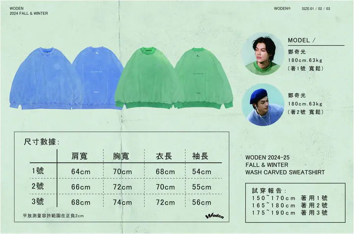 WODEN 2024 Fall & Winter 027 Wash Carved Sweatshirt