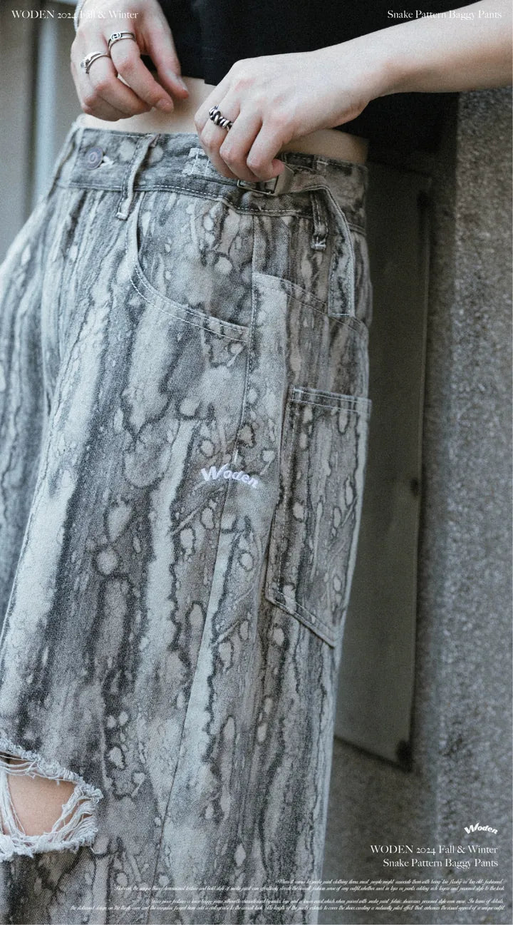 WODEN 2024 Fall & Winter 030 Snake Pattern Baggy Pants