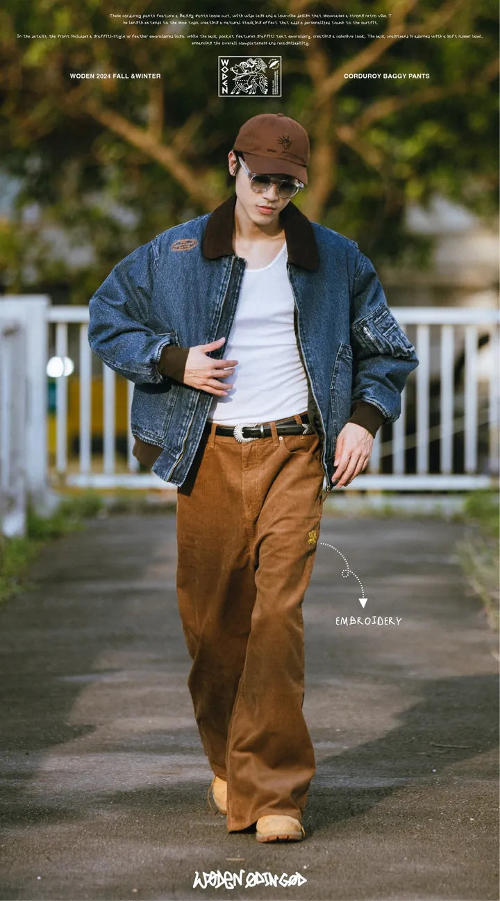 WODEN 2024 FALL &WINTER CORDUROY BAGGY PANTS