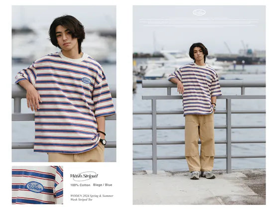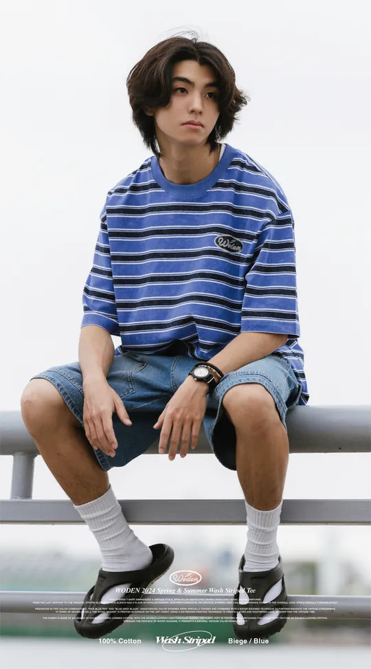 WODEN 2024 Spring & Summer 029 Wash Striped Tee