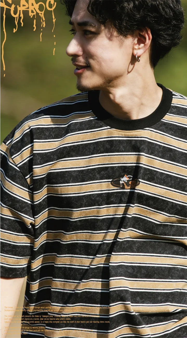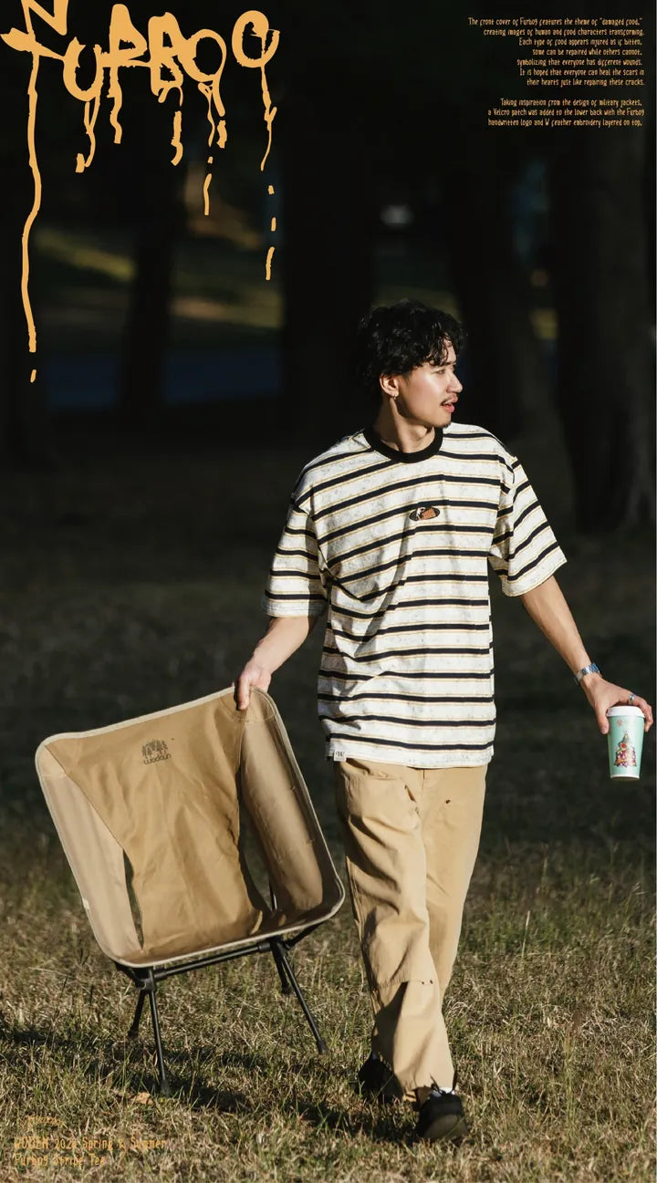 此款條紋T-shirt以復古水洗工藝呈現,融入了本季Furbo9繪制的圖像和軍裝元素。