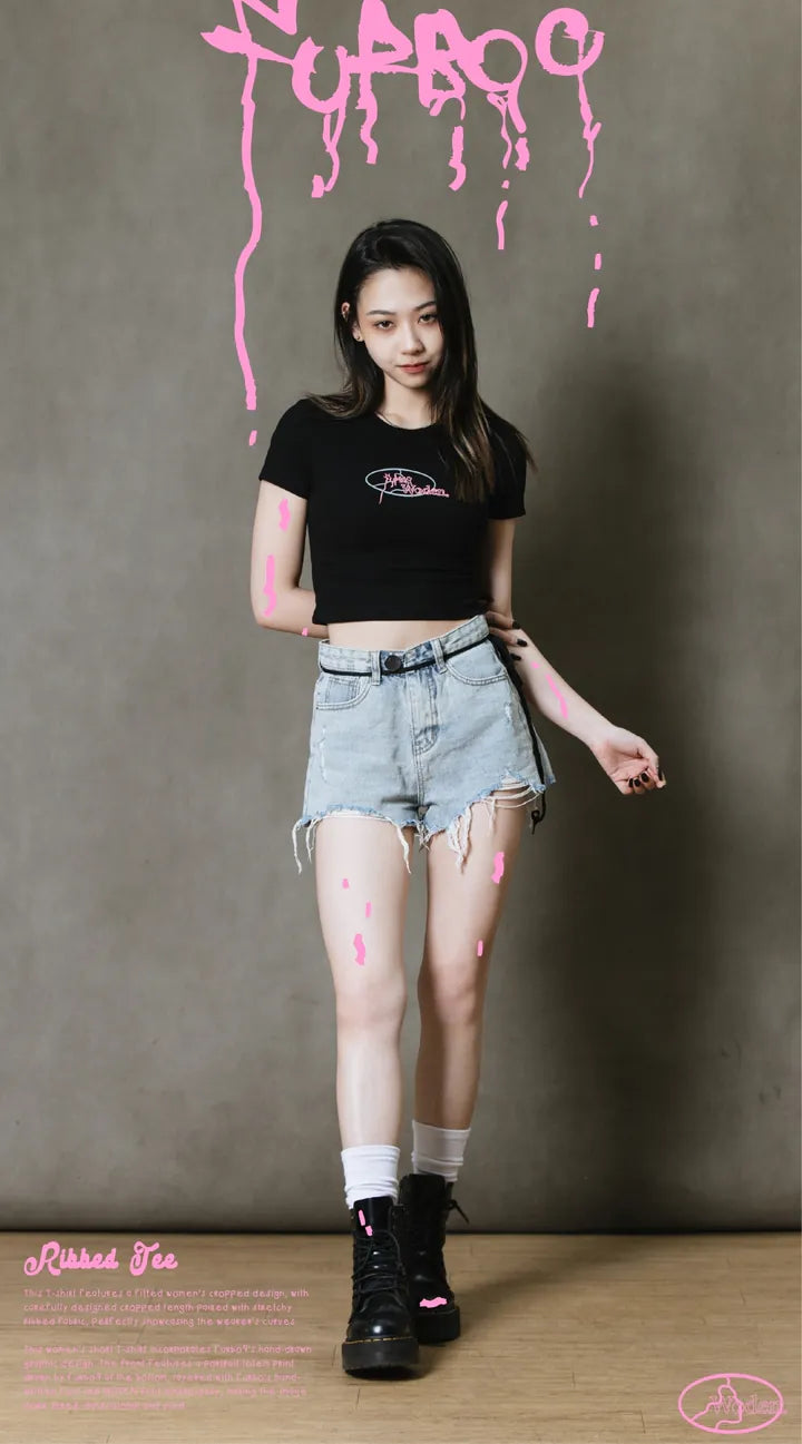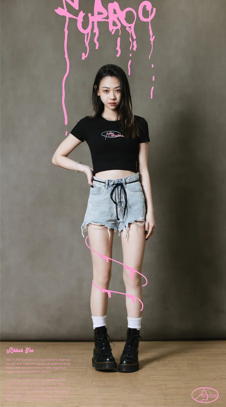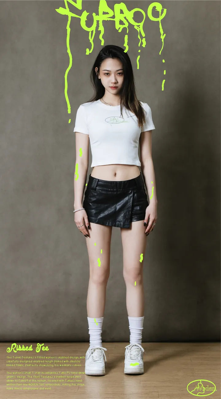 WODEN 2024 Spring & Summer Furbo9 Girl Ribbed Tee