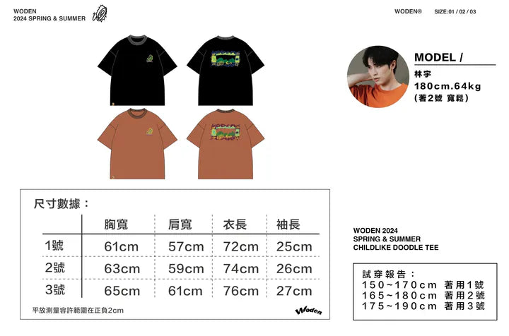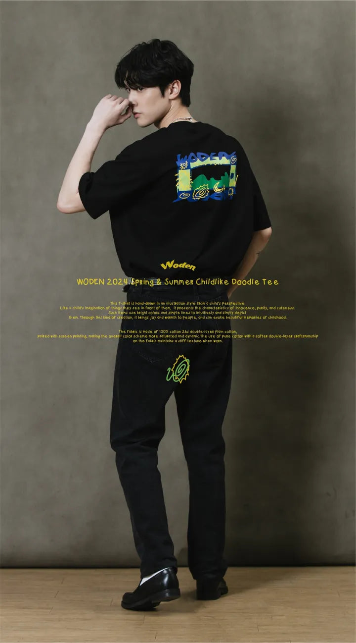 WODEN 2024 Spring & Summer Childlike Doodle Tee