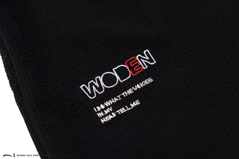 細節部份,領子加入羽毛電繡象徵WODEN出品品質保證的認證印記,右側正面加入WODEN 手寫字體排版,在不經意的地方,也才更能突顯出細節的巧妙,不搶戲但又更具風味。