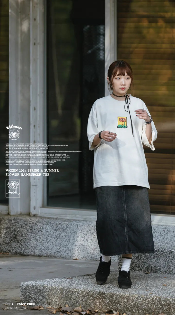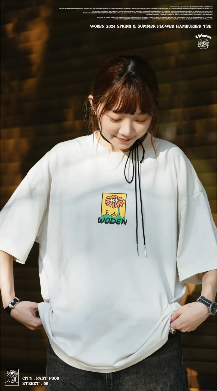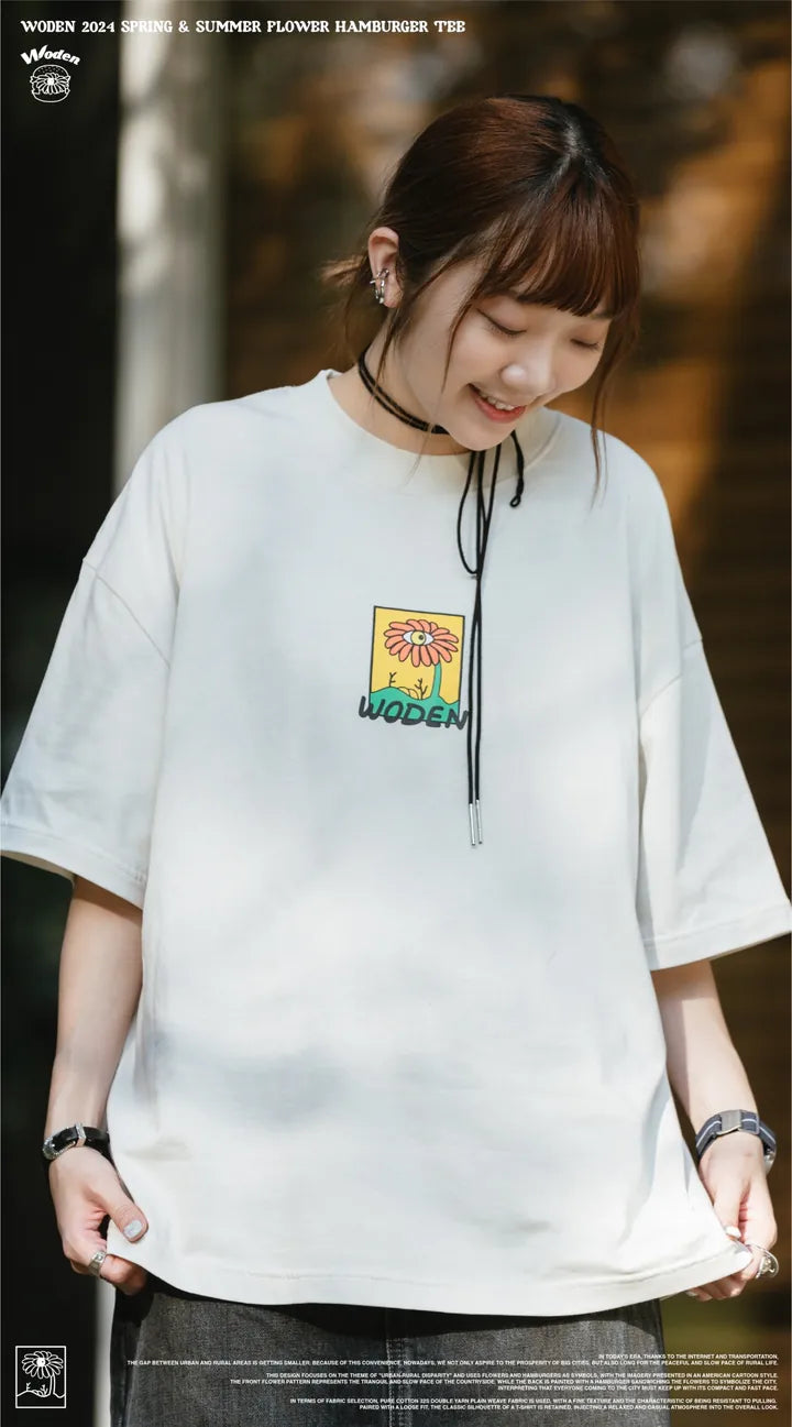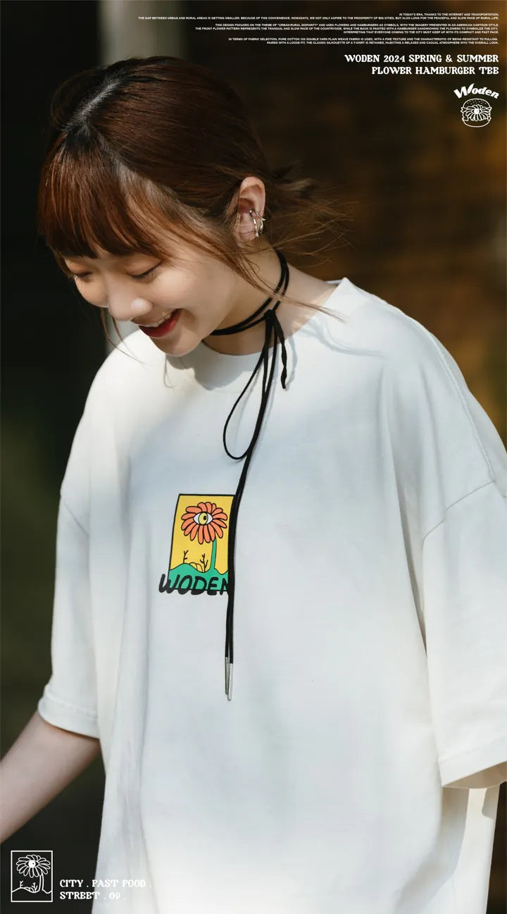 WODEN 2024 Spring & Summer Flower Hamburger Tee